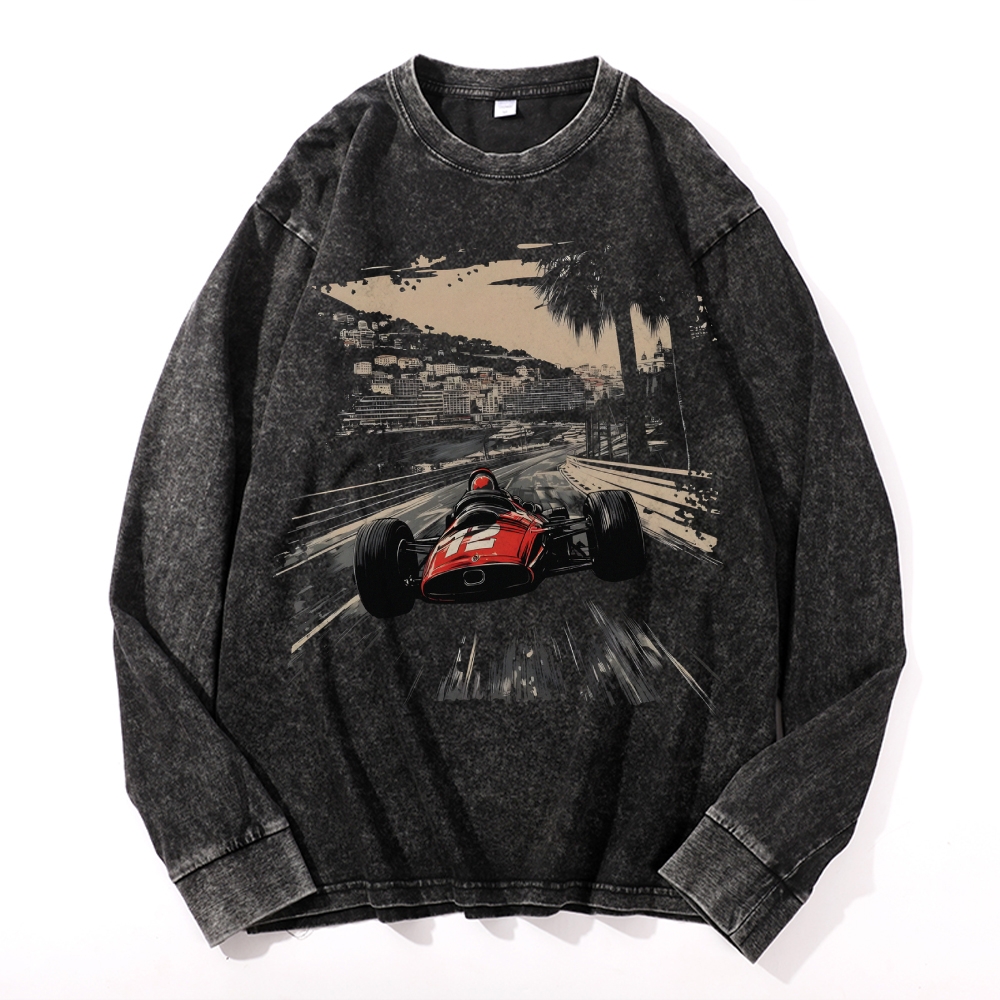 Race Car Graphic Deep Washed Vintage Long Sleeves T-Shirt