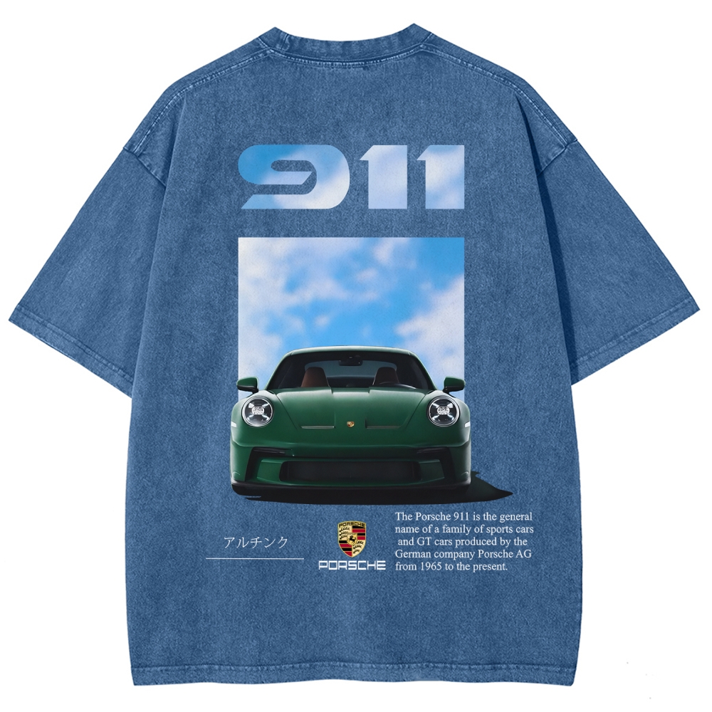 Vintage Classic Sports Car Graphic 911 Unisex Fit Washed T-Shirt