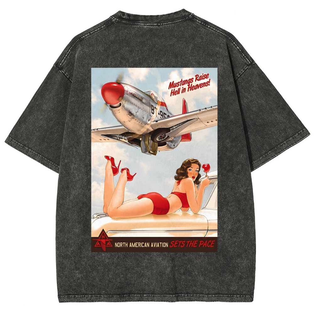 P-51 WWII Warbird Graphic Unisex Fit Washed T-Shirt