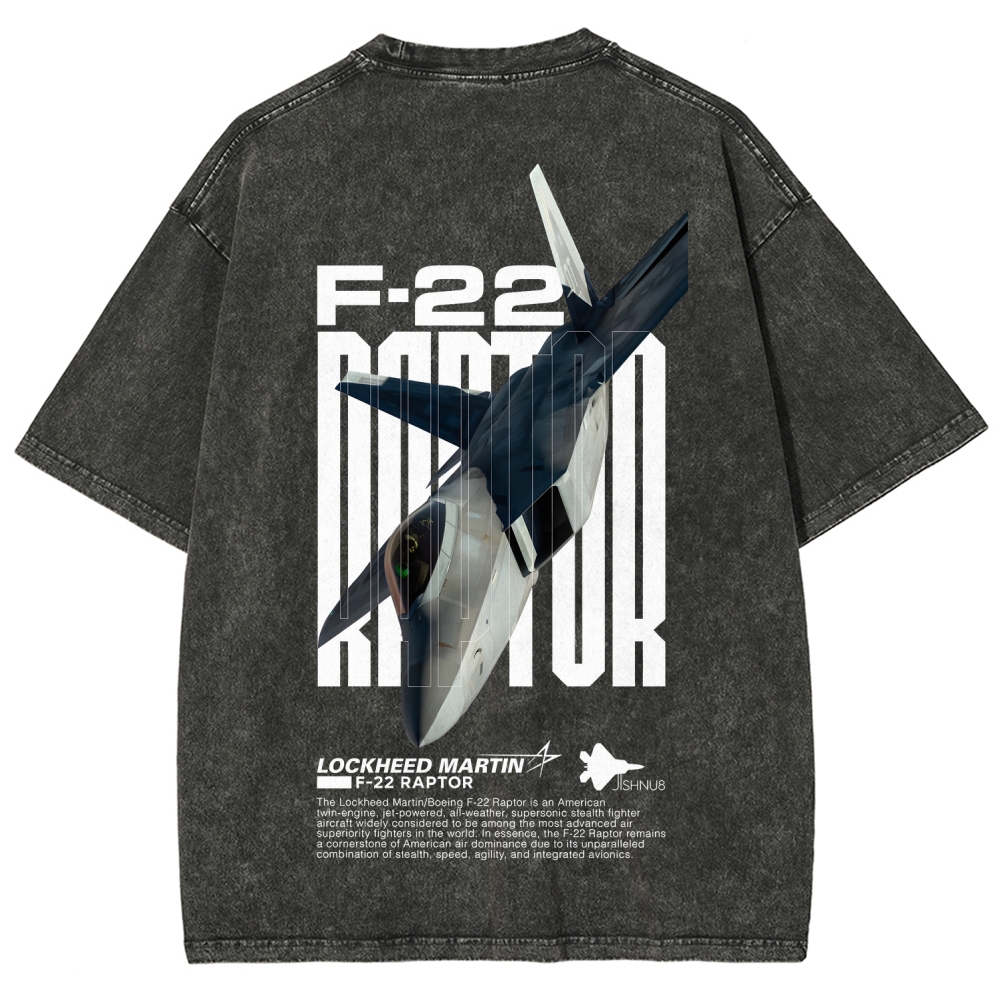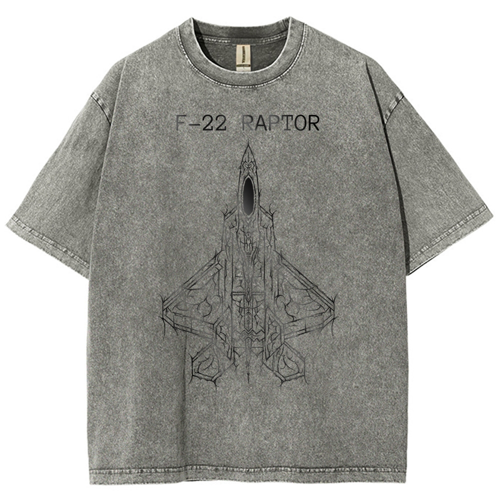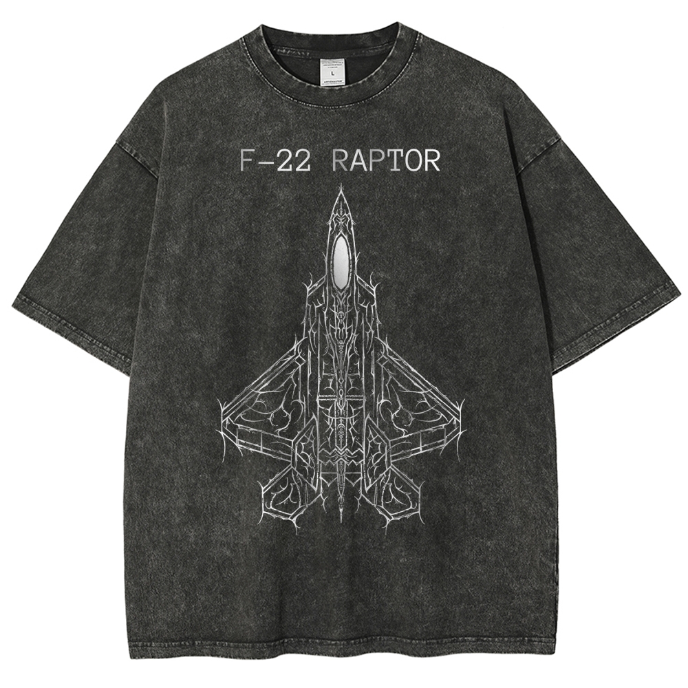 Gothic-style Aircraft F-22 Unisex Fit Washed T-Shirt