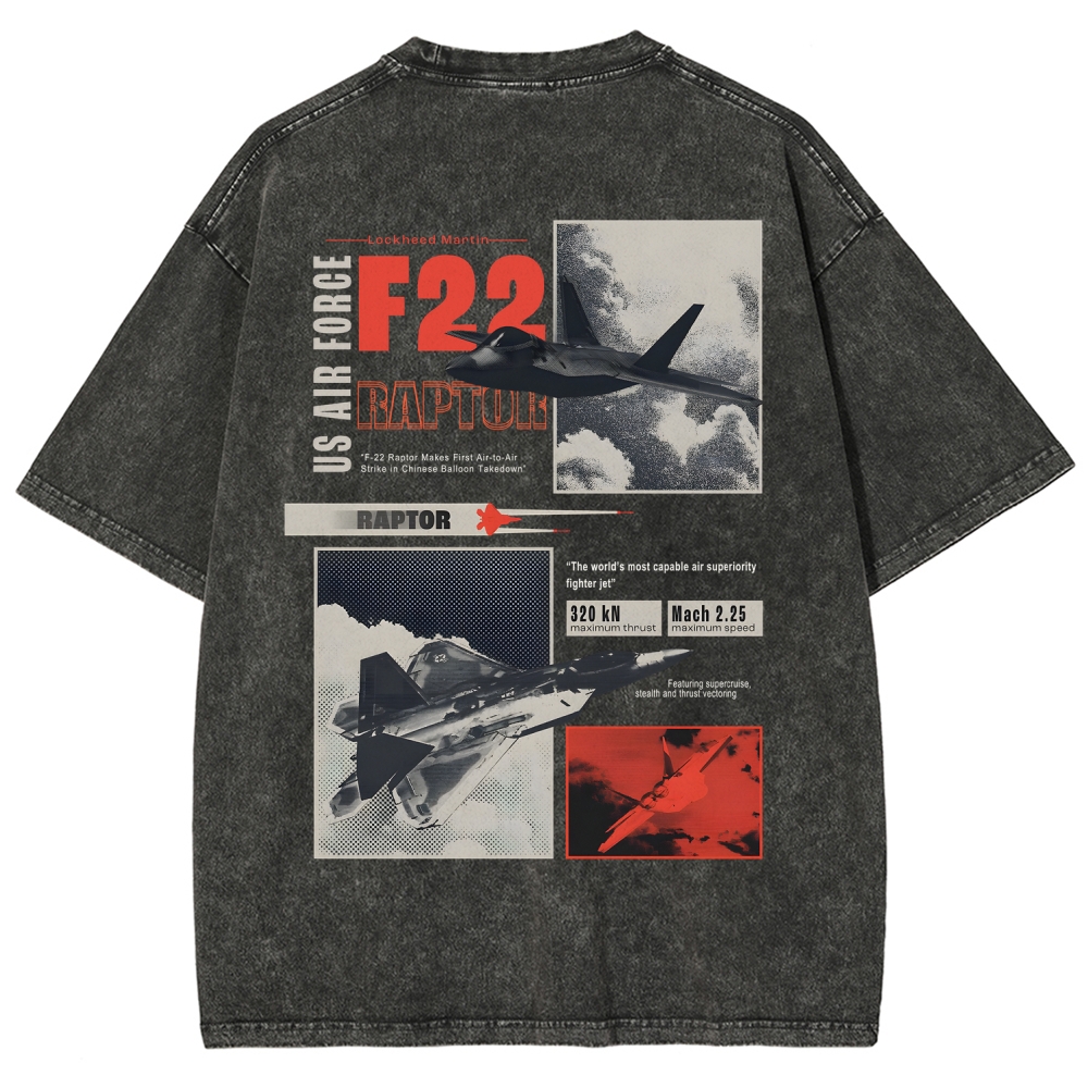 Vintage F-22 Raptor Military Graphic Unisex Fit Washed T-Shirt