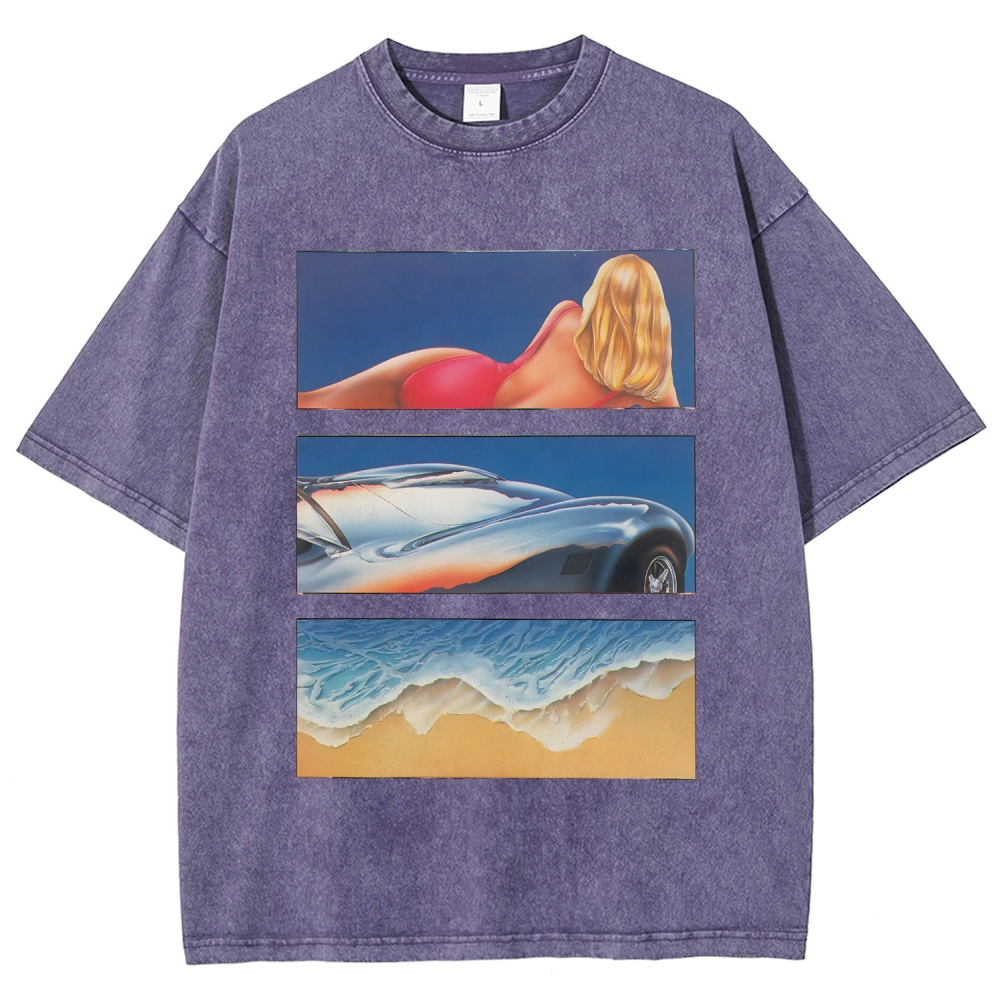 Beach Holidays Super Car Unisex Fit Washed T-Shirt