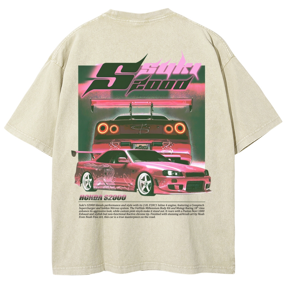 Classical Movie Racing Culture Suki Pink S2000 Unisex Fit Washed T-Shirt