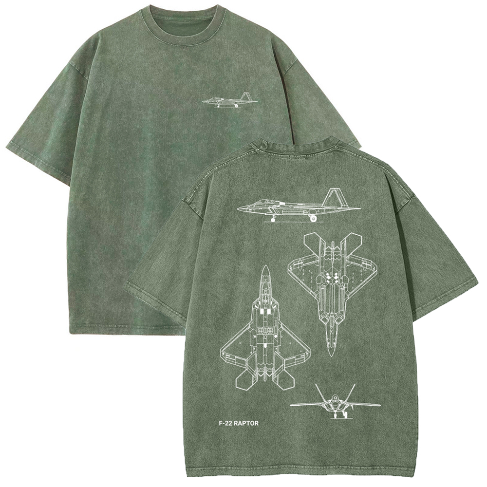 F-22 Raptor Blueprint Unisex Fit Washed T-Shirt