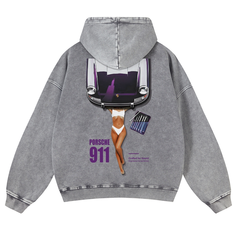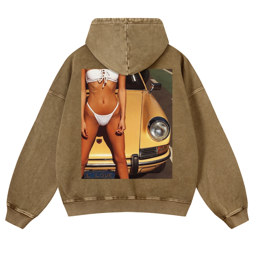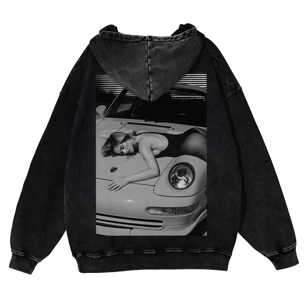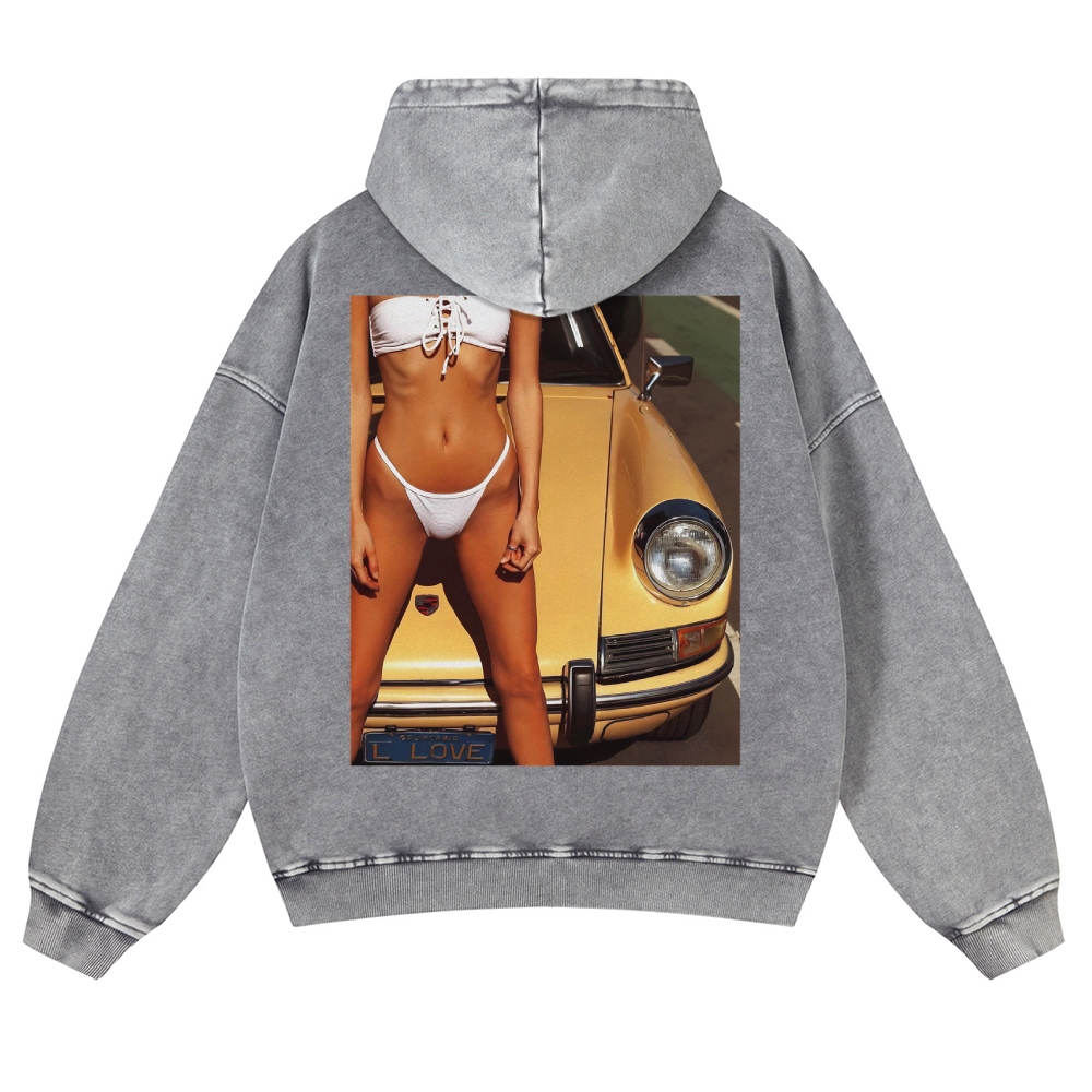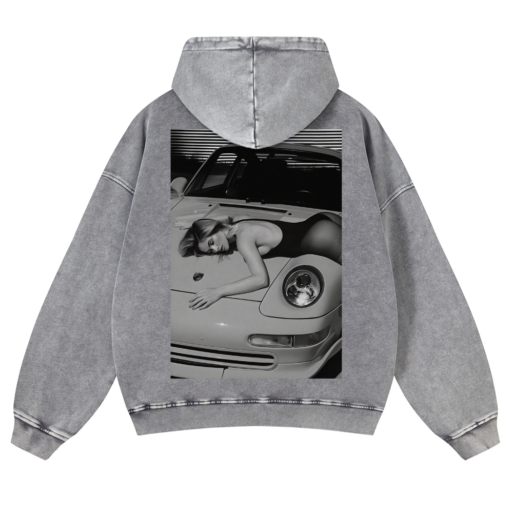 Retro 911 Cars & Girl Unisex Fit Vintage Washed Hoodie