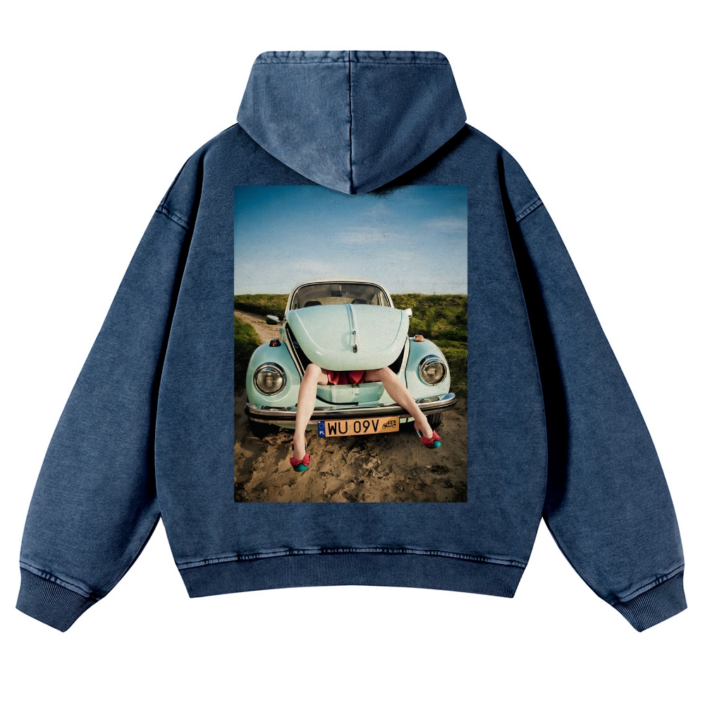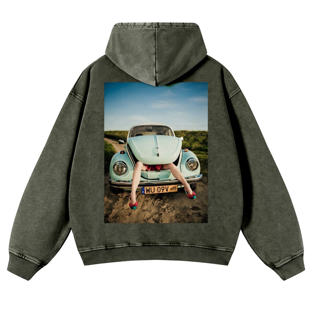 The Beetle Car Unisex Fit Vintage Washed Hoodie