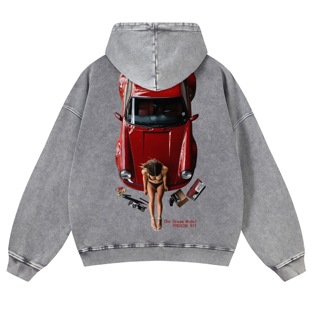Red 911 The Dream Model Unisex Fit Vintage Washed Hoodie