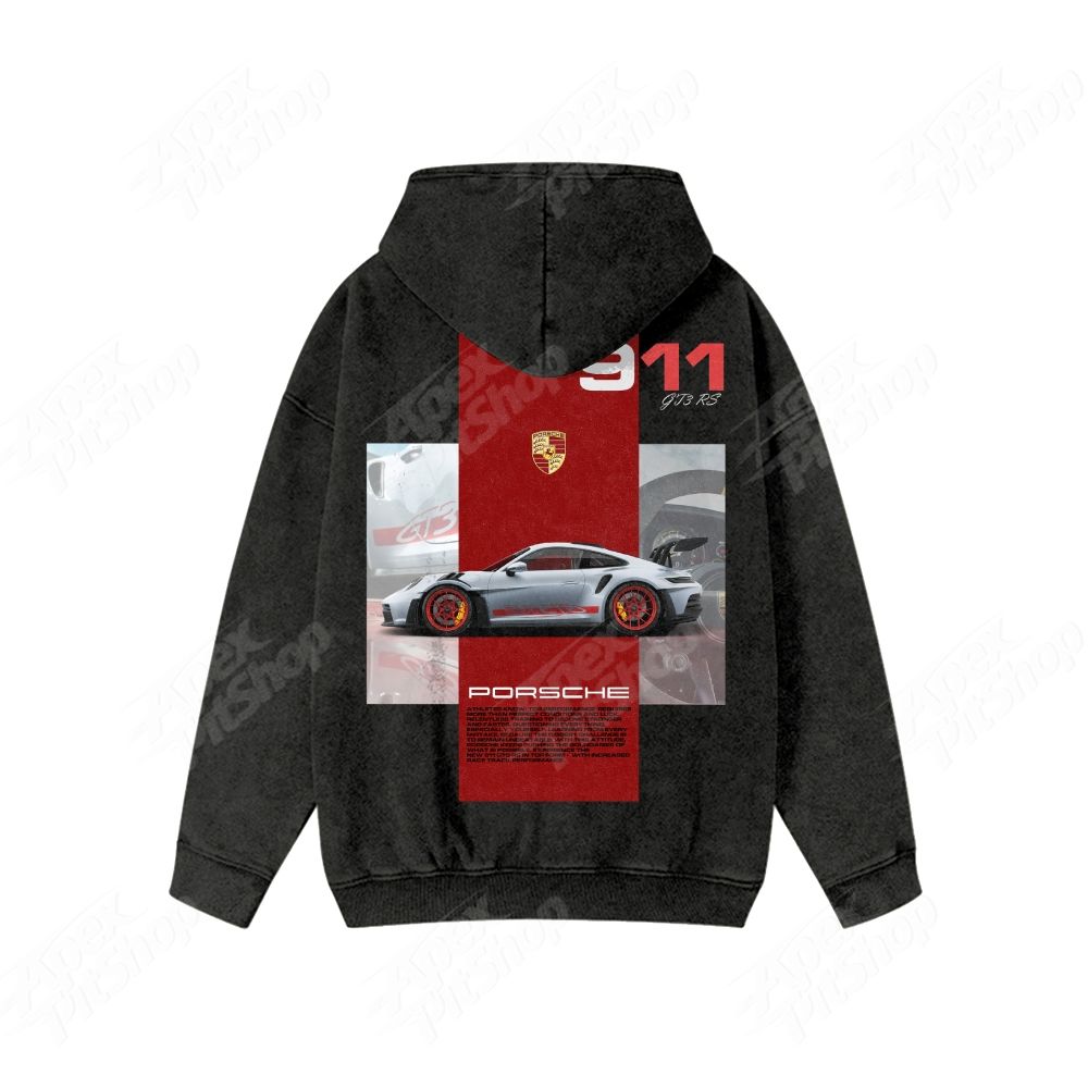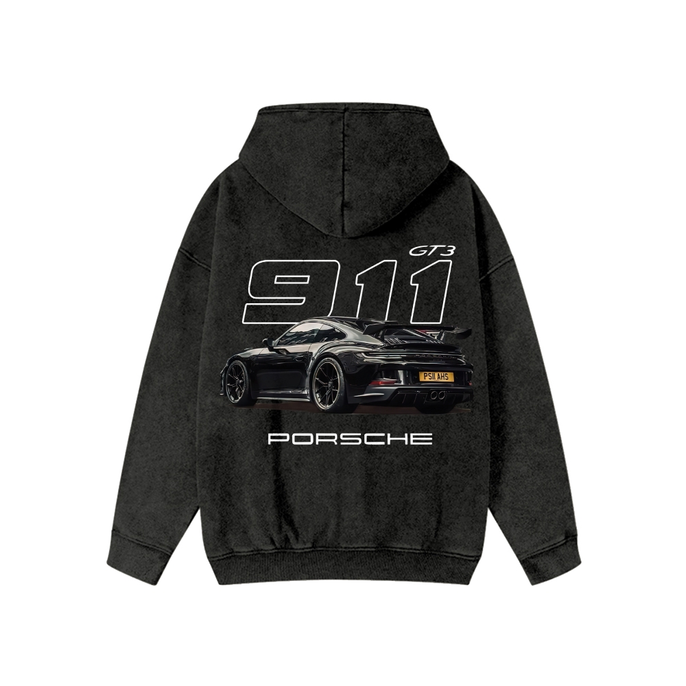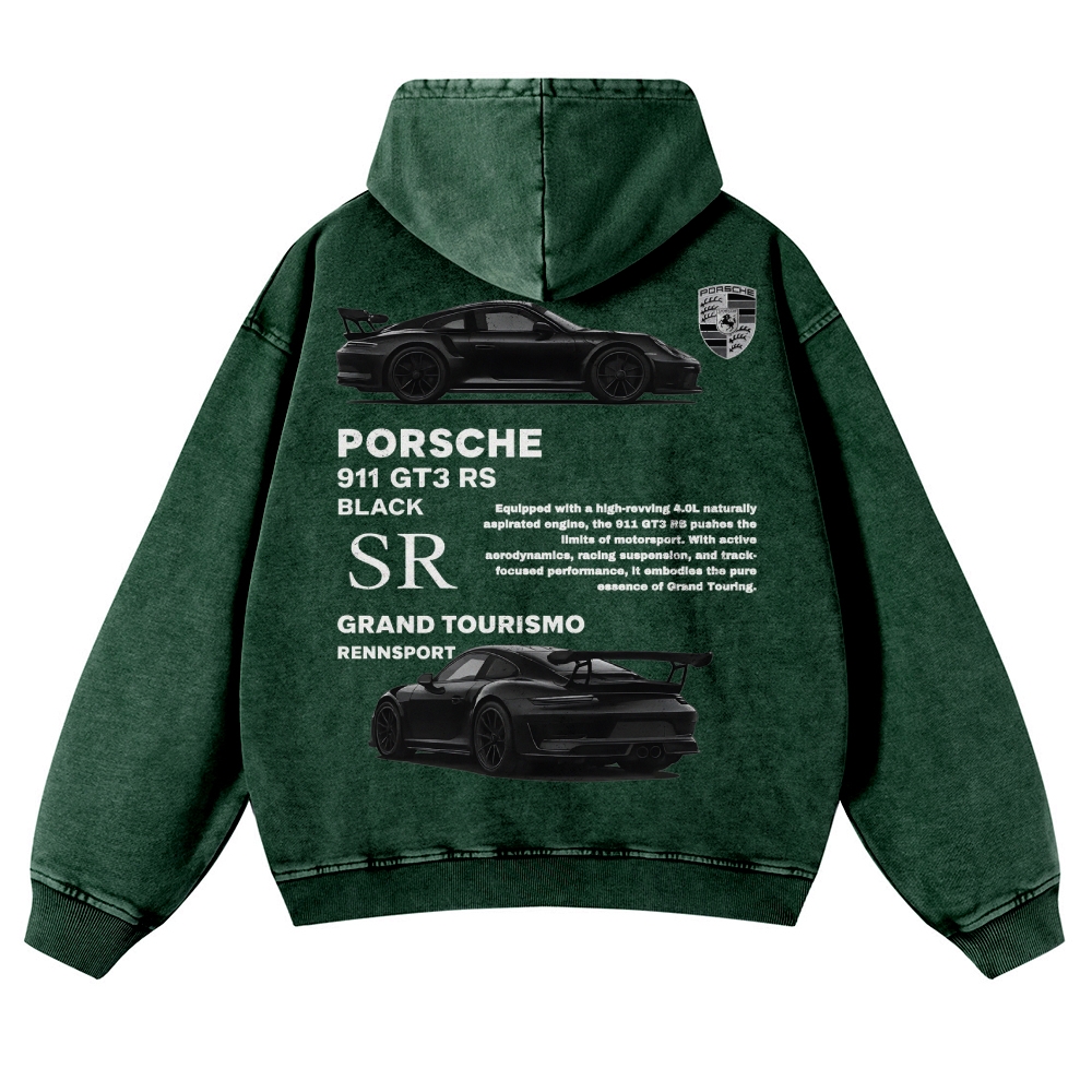 Black 911 GT3 RS Unisex Fit Vintage Washed Hoodie