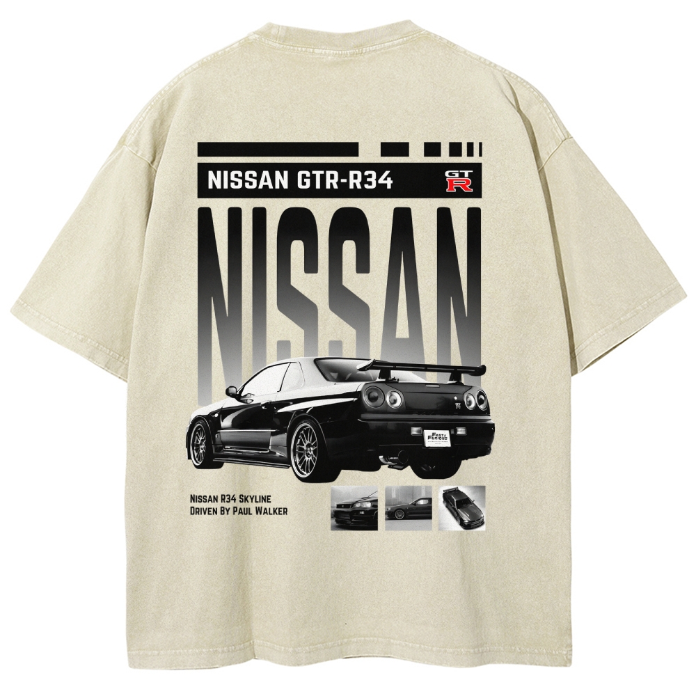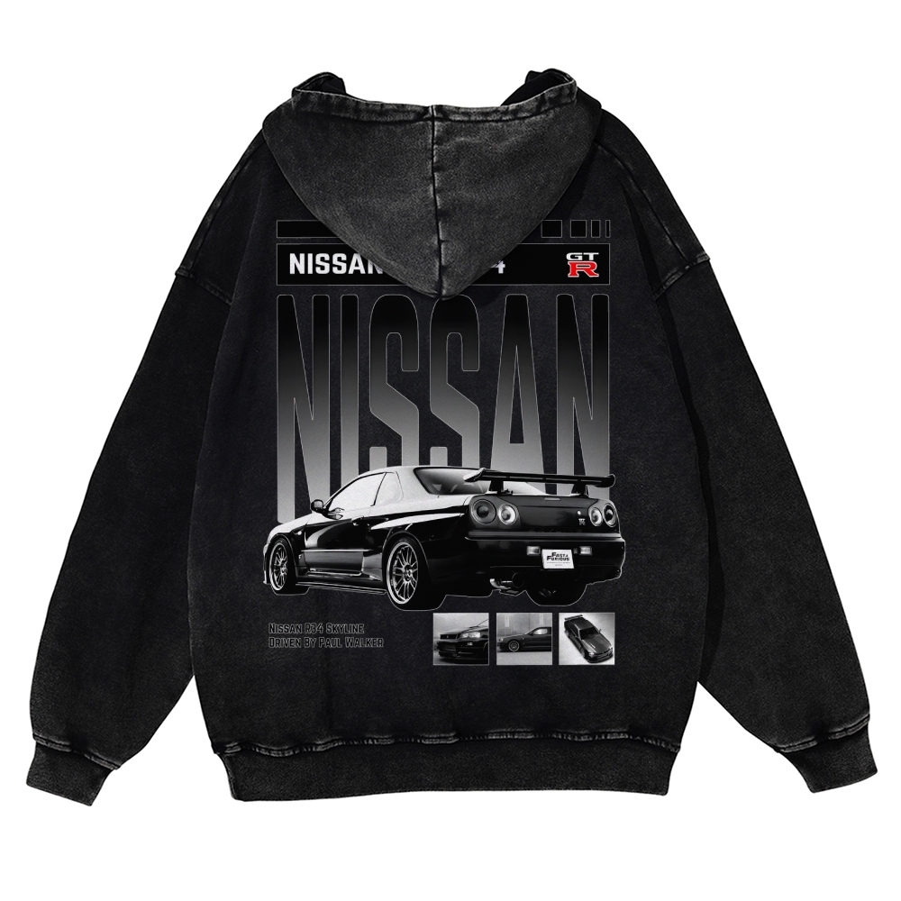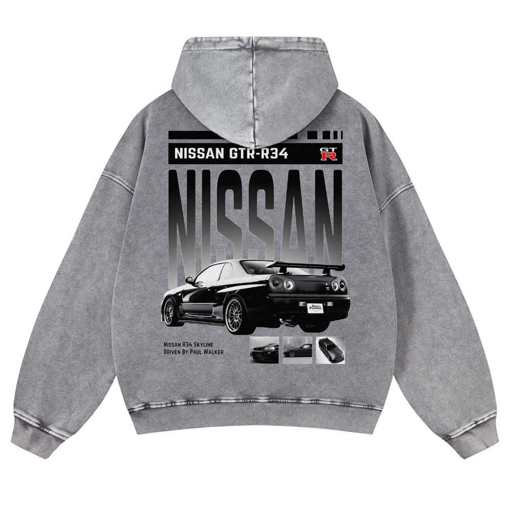 R34 GTR Skyline Unisex Fit Vintage Washed Hoodie