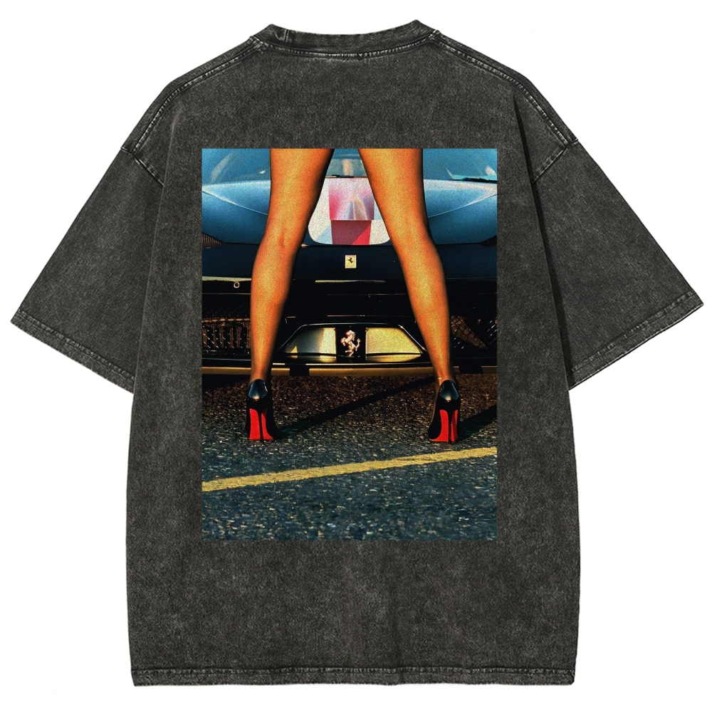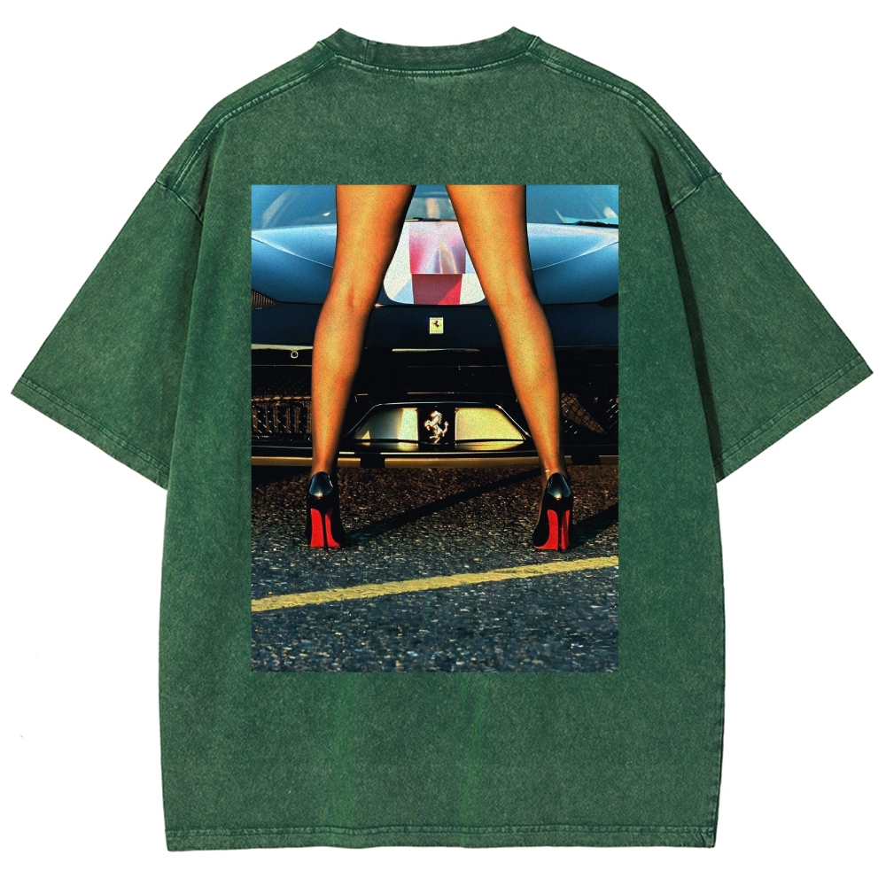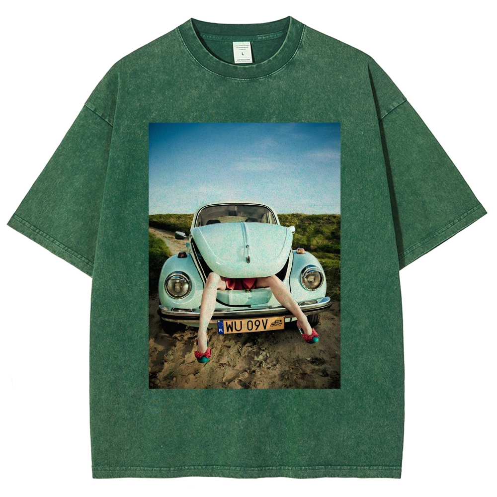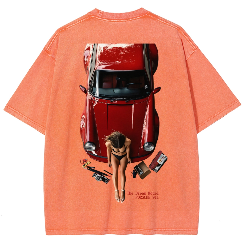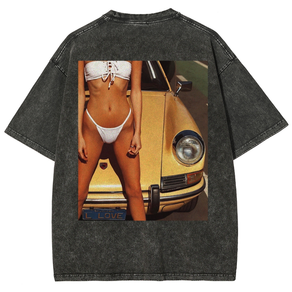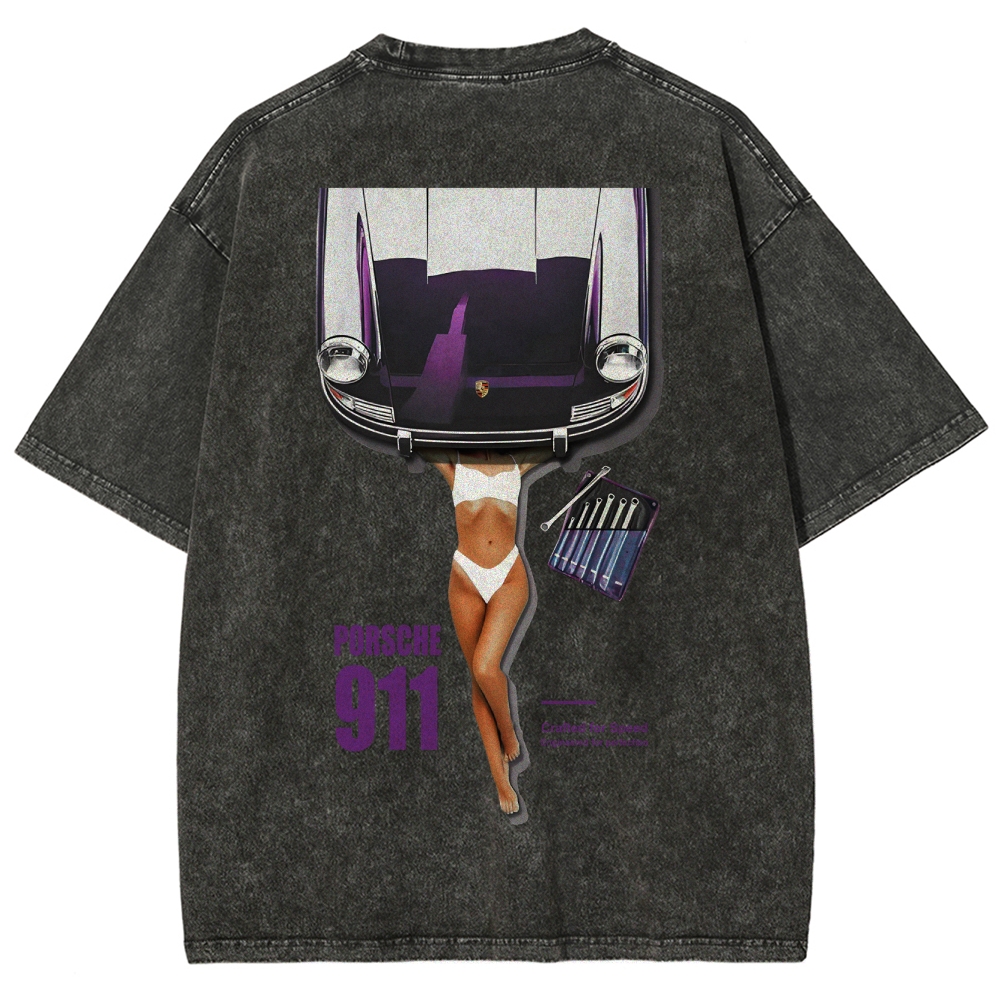 Retro 911 Cars & Girl Unisex Fit Washed T-Shirt