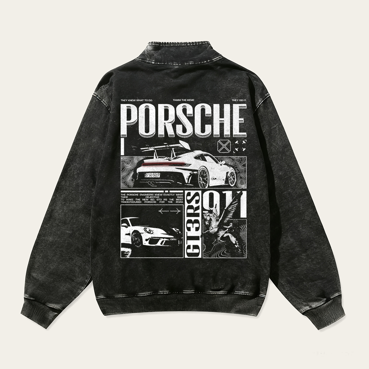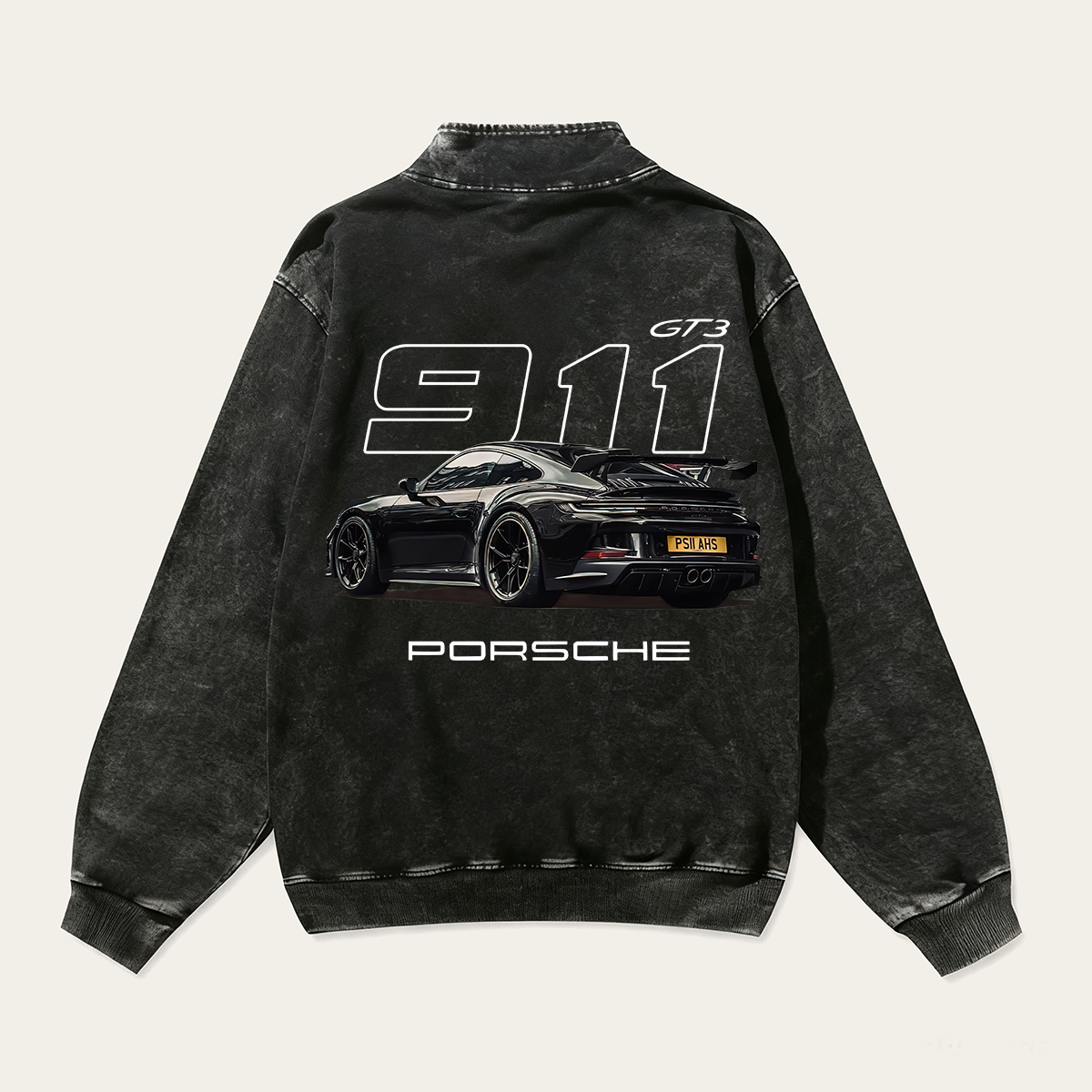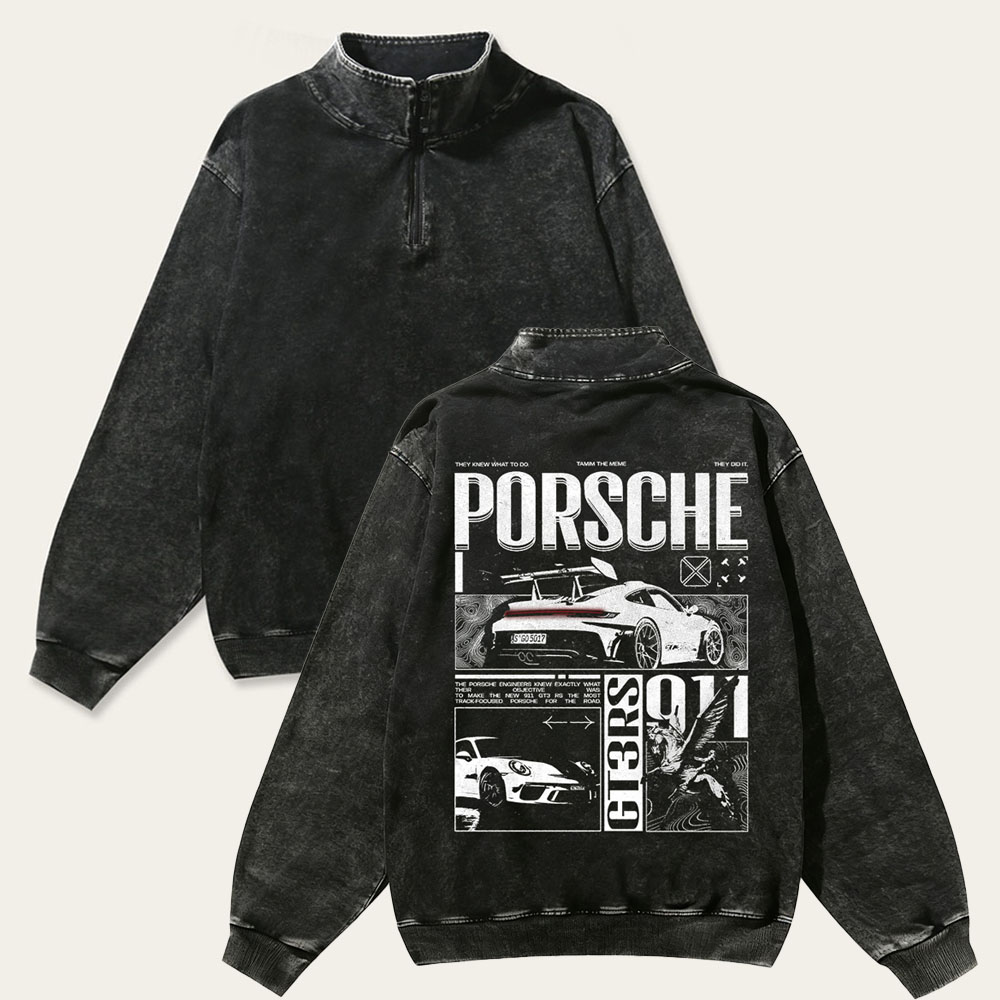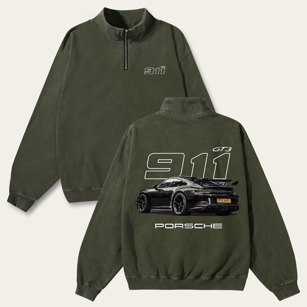 911 GT3 Unisex Multicolored Pure Washed Cotton Half-Zipper Pulloverr