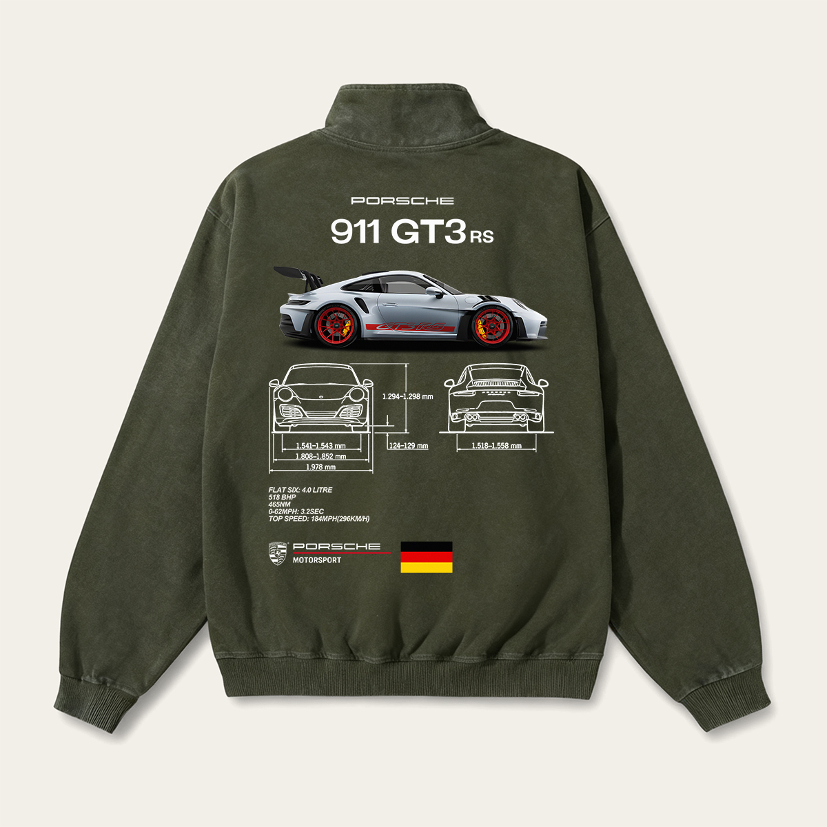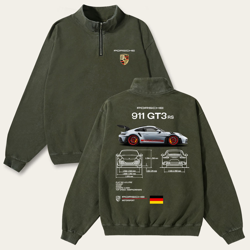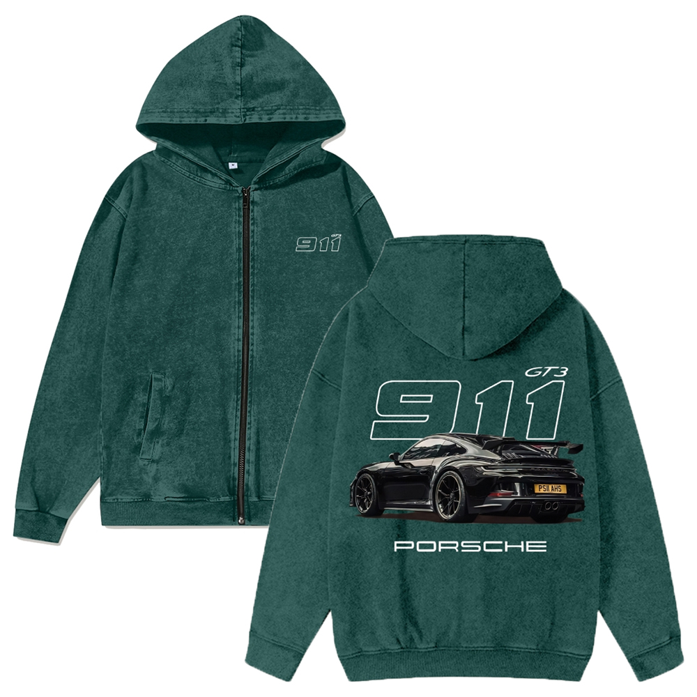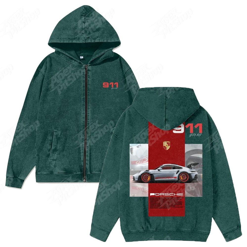 911 GT3 RS Unisex Washed Cotton Zipper Hooded Sweatshirt