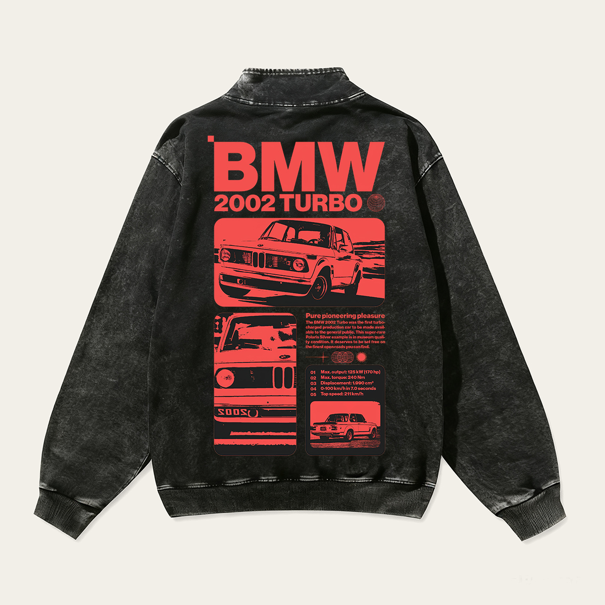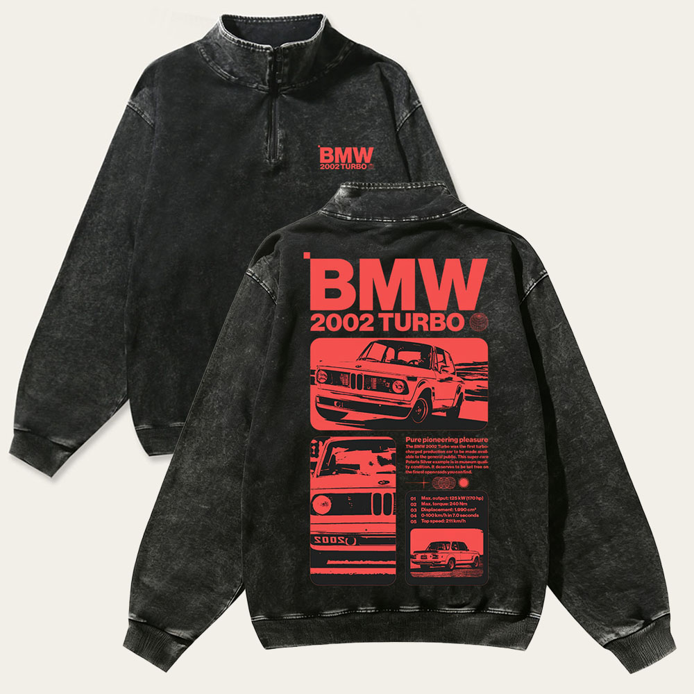 2002 Turbo Unisex Multicolored Pure Washed Cotton Half-Zipper Pulloverr