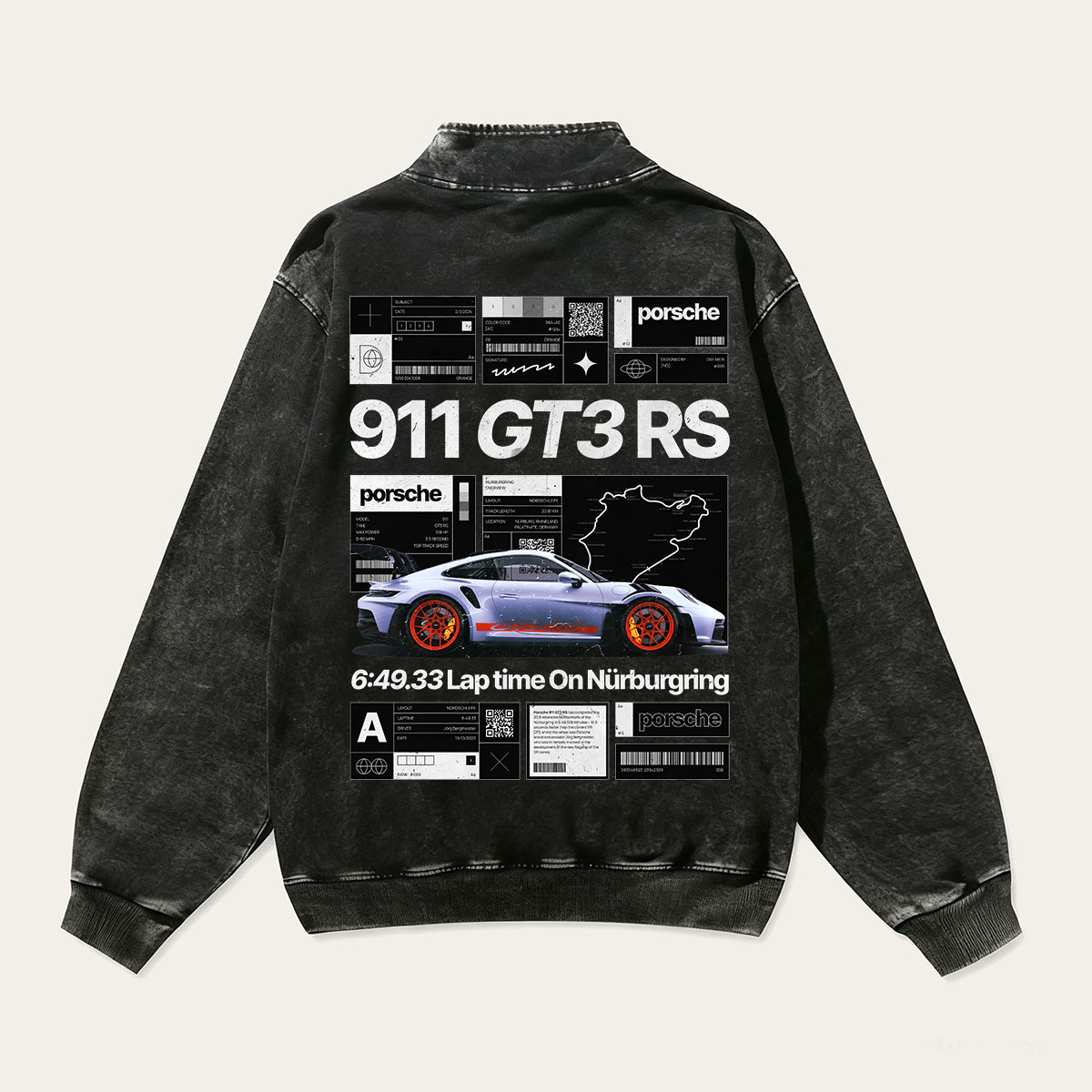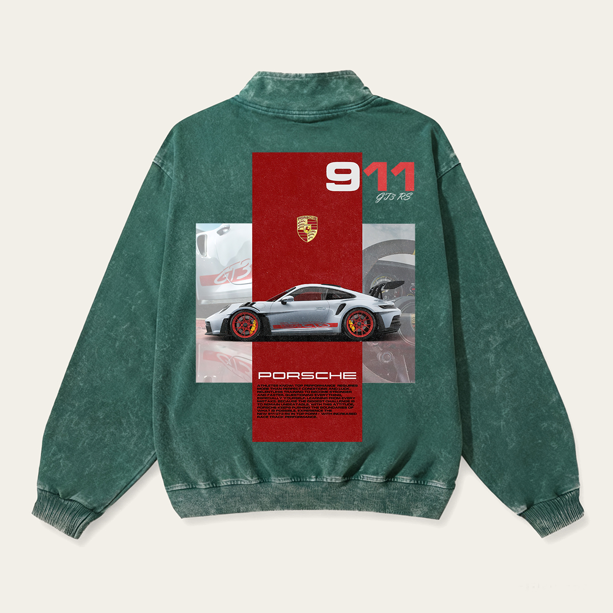 911 GT3 RS Unisex Multicolored Pure Washed Cotton Half-Zipper Pulloverr