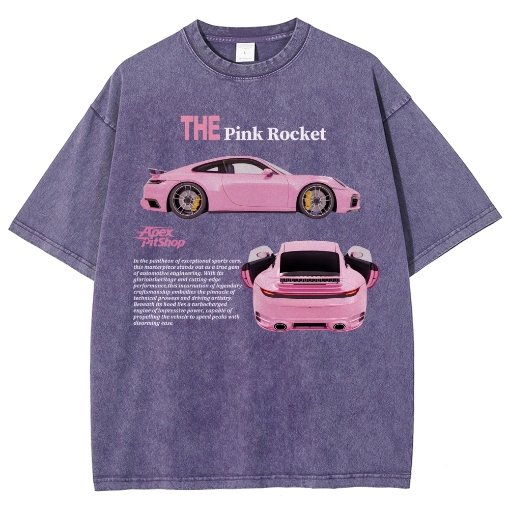 The Pink Rocket Cars Unisex Fit Washed T-Shirt