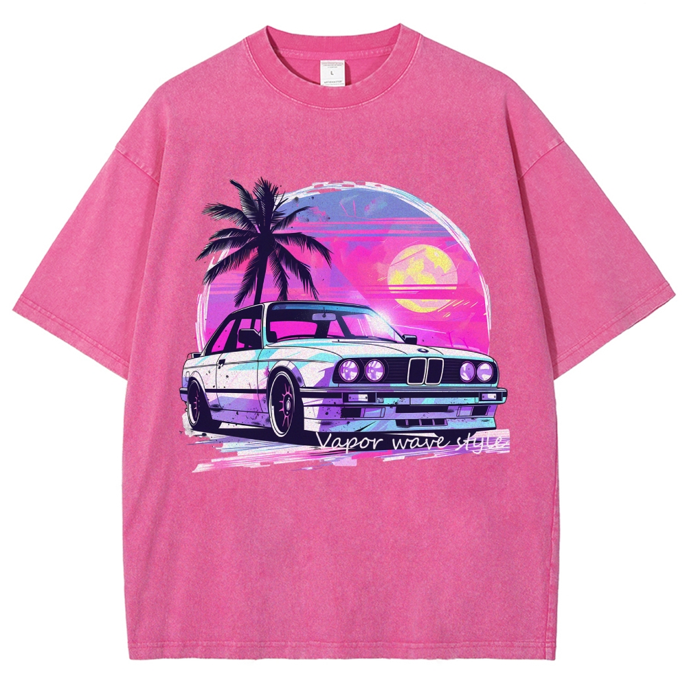 Vapor Wave Style Supercar Unisex Fit Washed T-Shirt