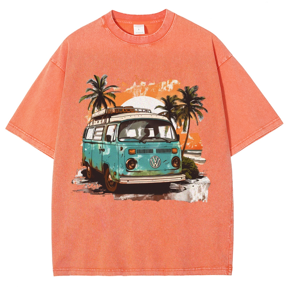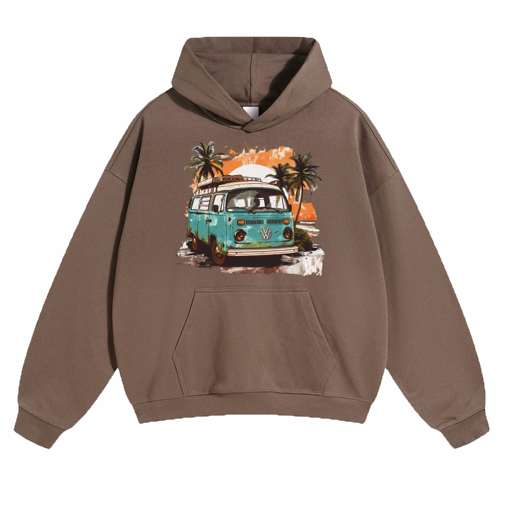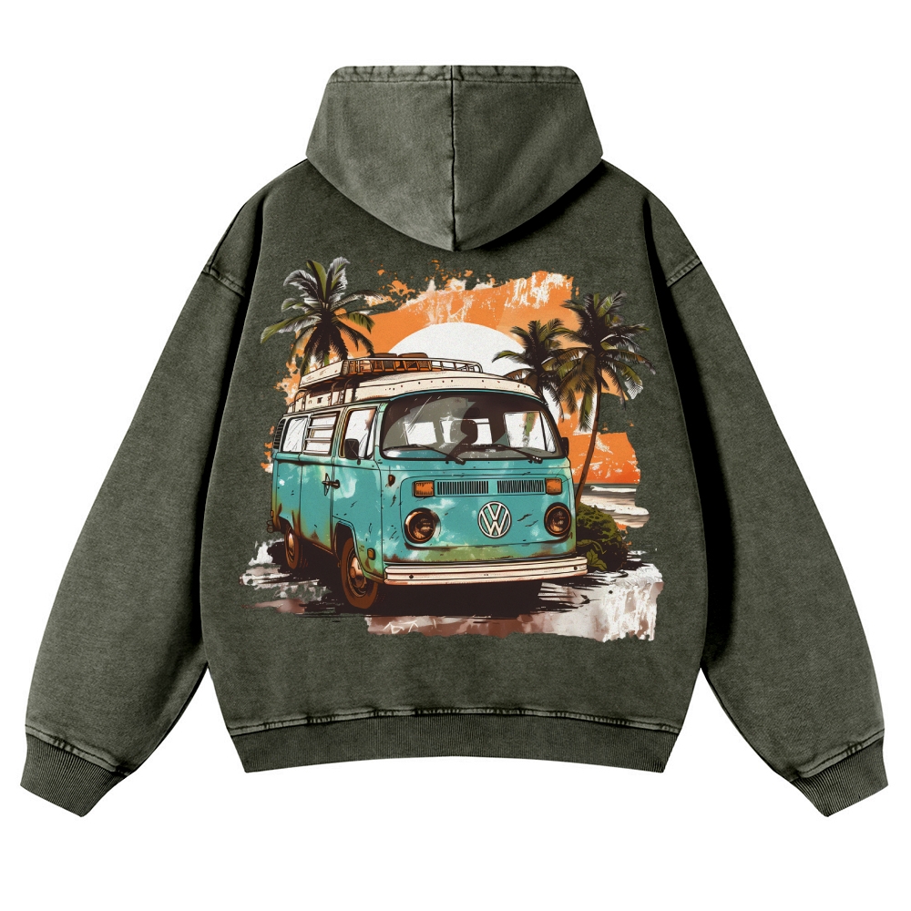 Sunset Retro Bus Unisex Fit Vintage Washed Hoodie