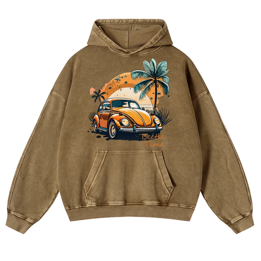 Retro Car Graphic Unisex Fit Vintage Washed Hoodie
