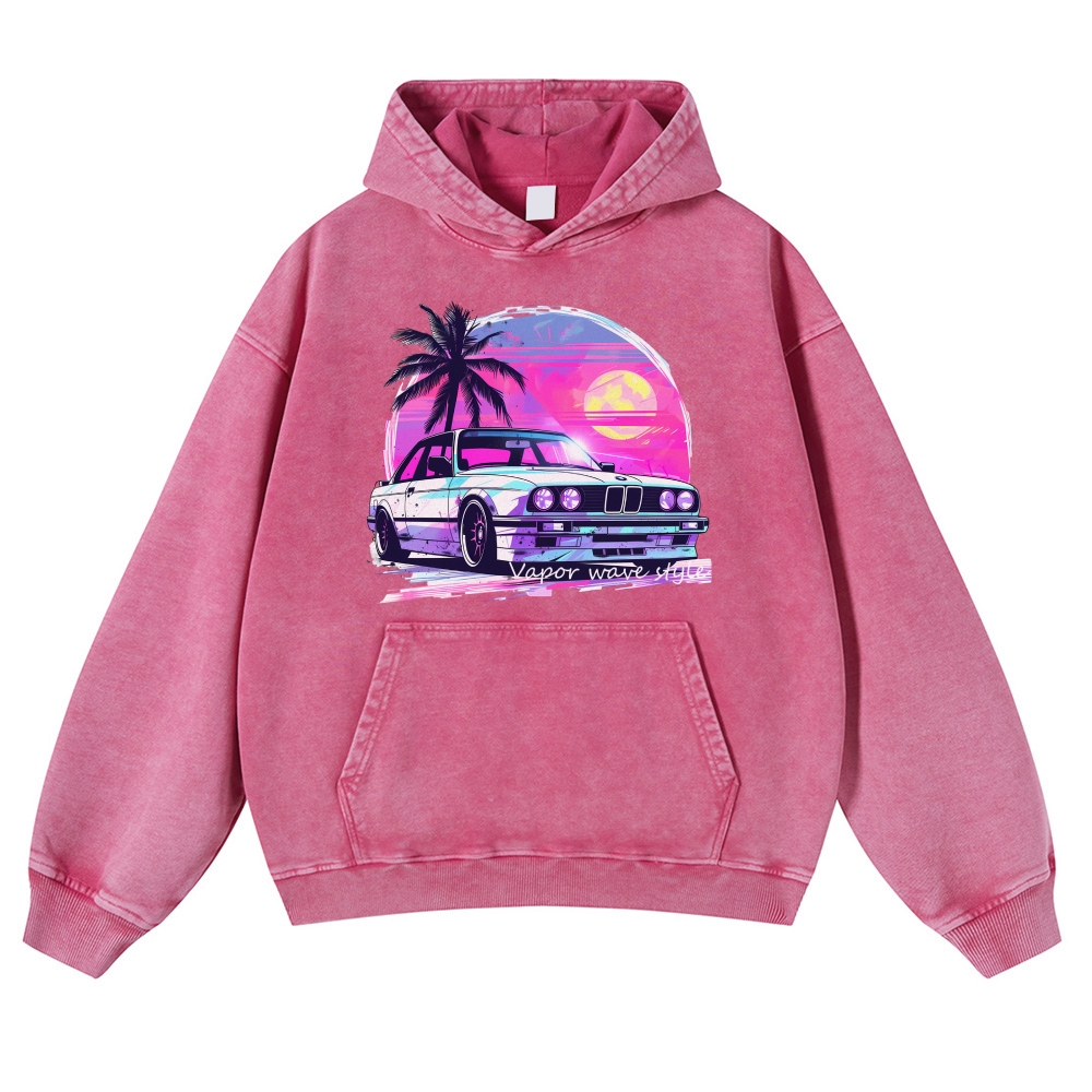 Vapor Wave Style Supercar Unisex Fit Vintage Washed Hoodie
