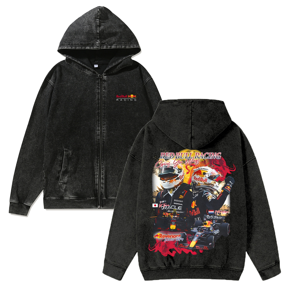 2025 Racing Unisex Washed Cotton Zipper Hooded Sweatshirt