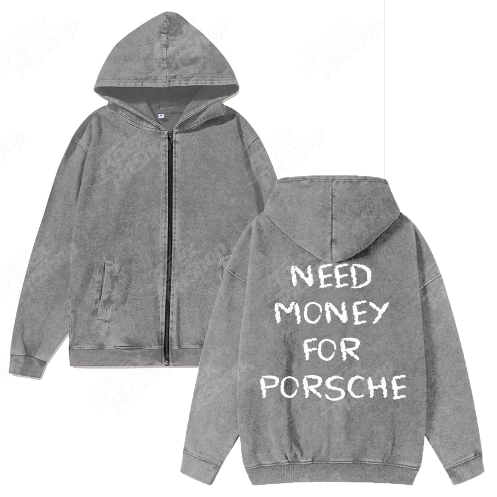 Need Money For Unisex Washed Cotton Zipper Hooded Sweatshirt