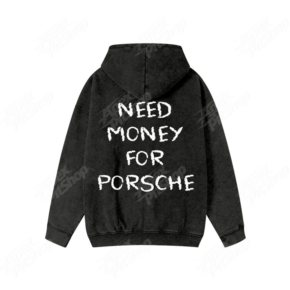 Need Money For Cars Unisex Washed Cotton Zipper Hooded Sweatshirt