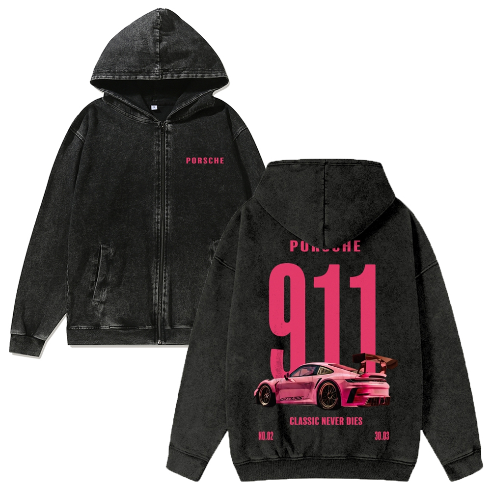 Chaos 911 Supercar Unisex Washed Cotton Zipper Hooded Sweatshirt