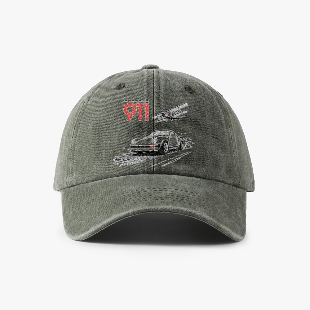 911 Supercar & Biplane Unisex Washed Vintage Baseball Cap