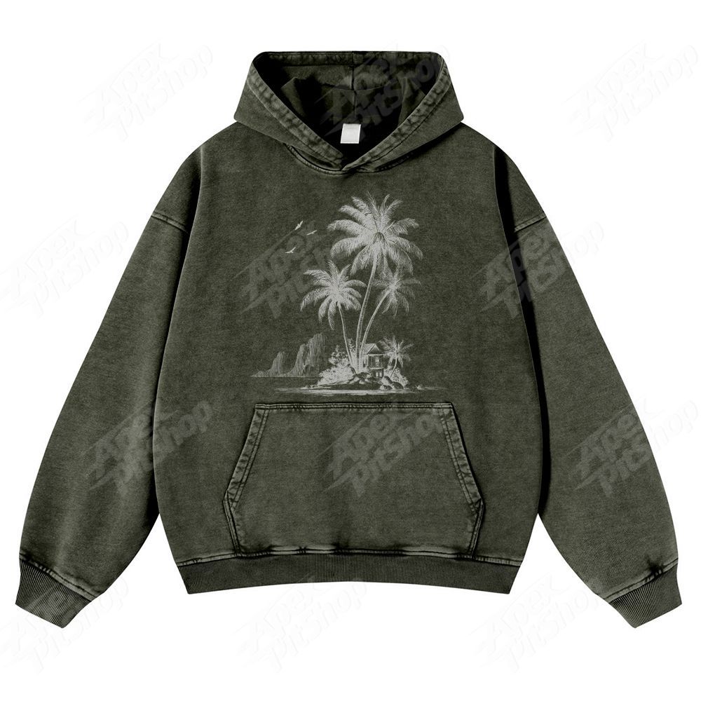 American Retro Pattern Unisex Fit Vintage Washed Hoodie