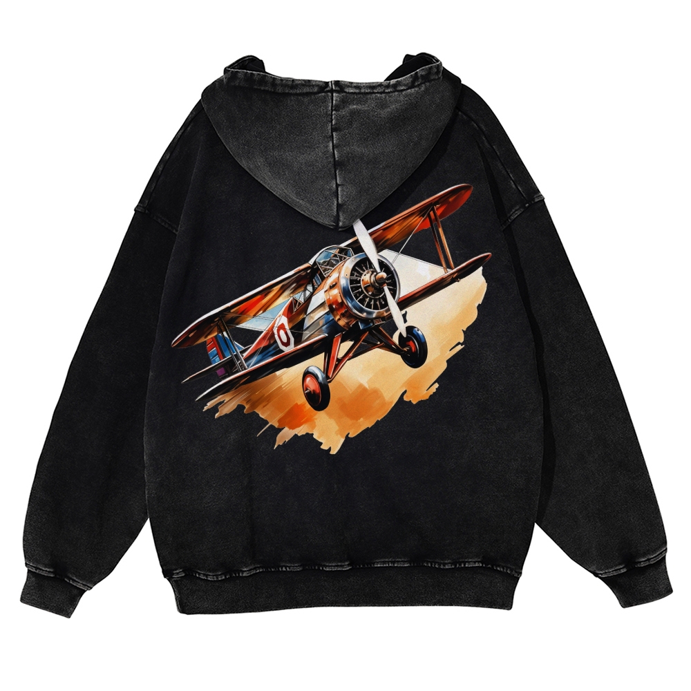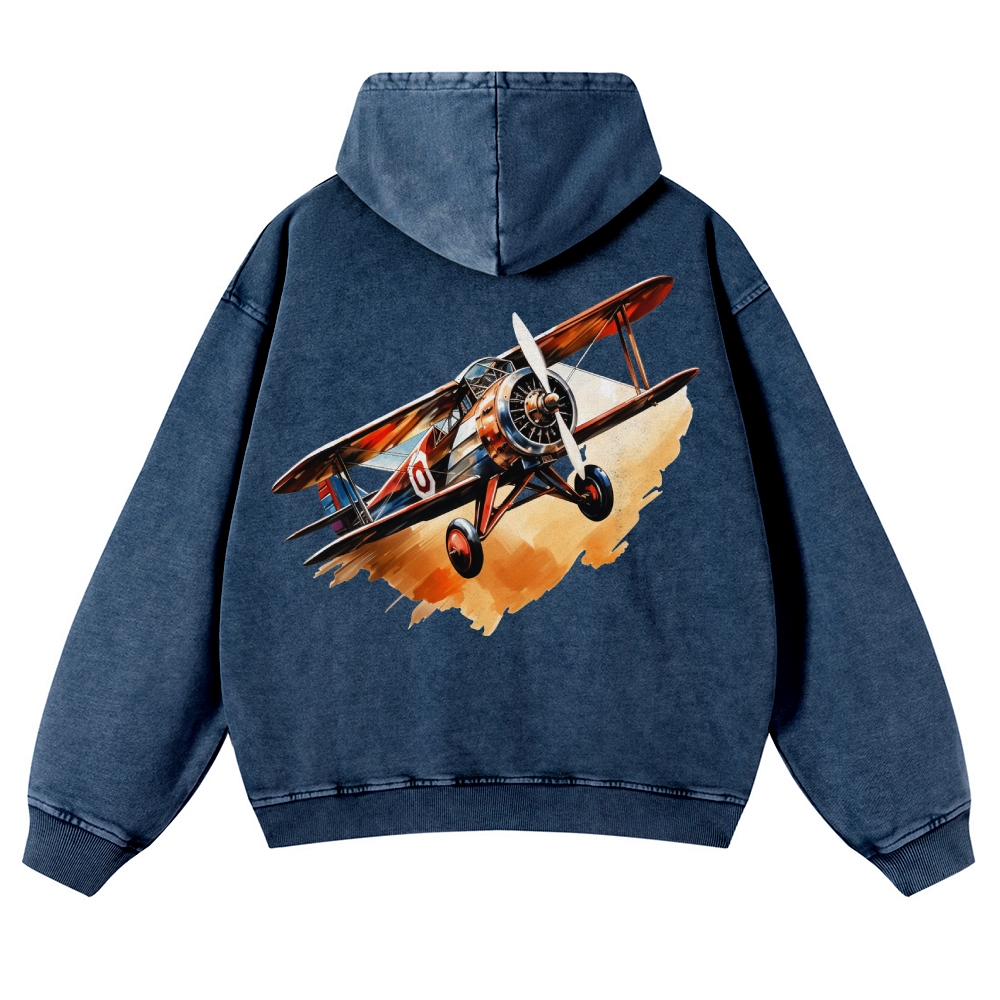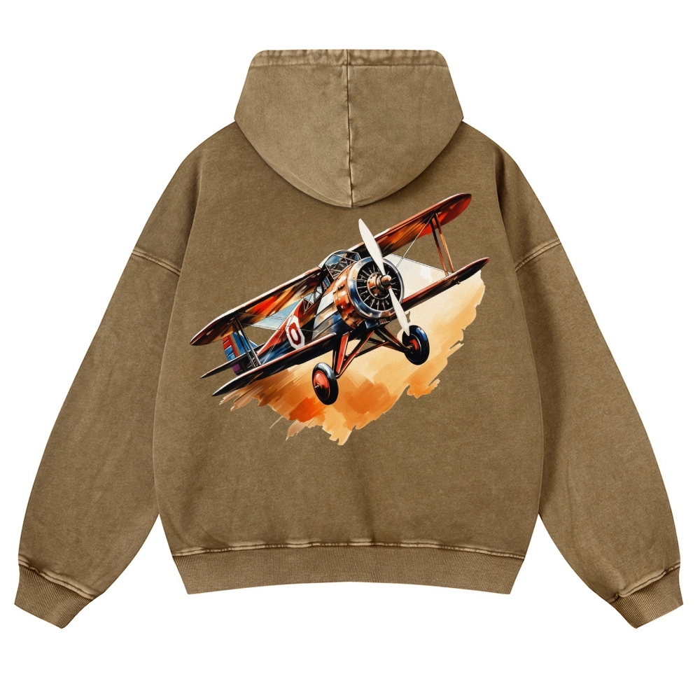 Biplane Unisex Fit Vintage Washed Hoodie