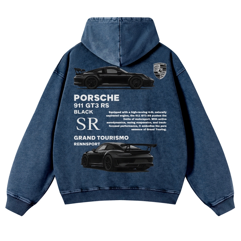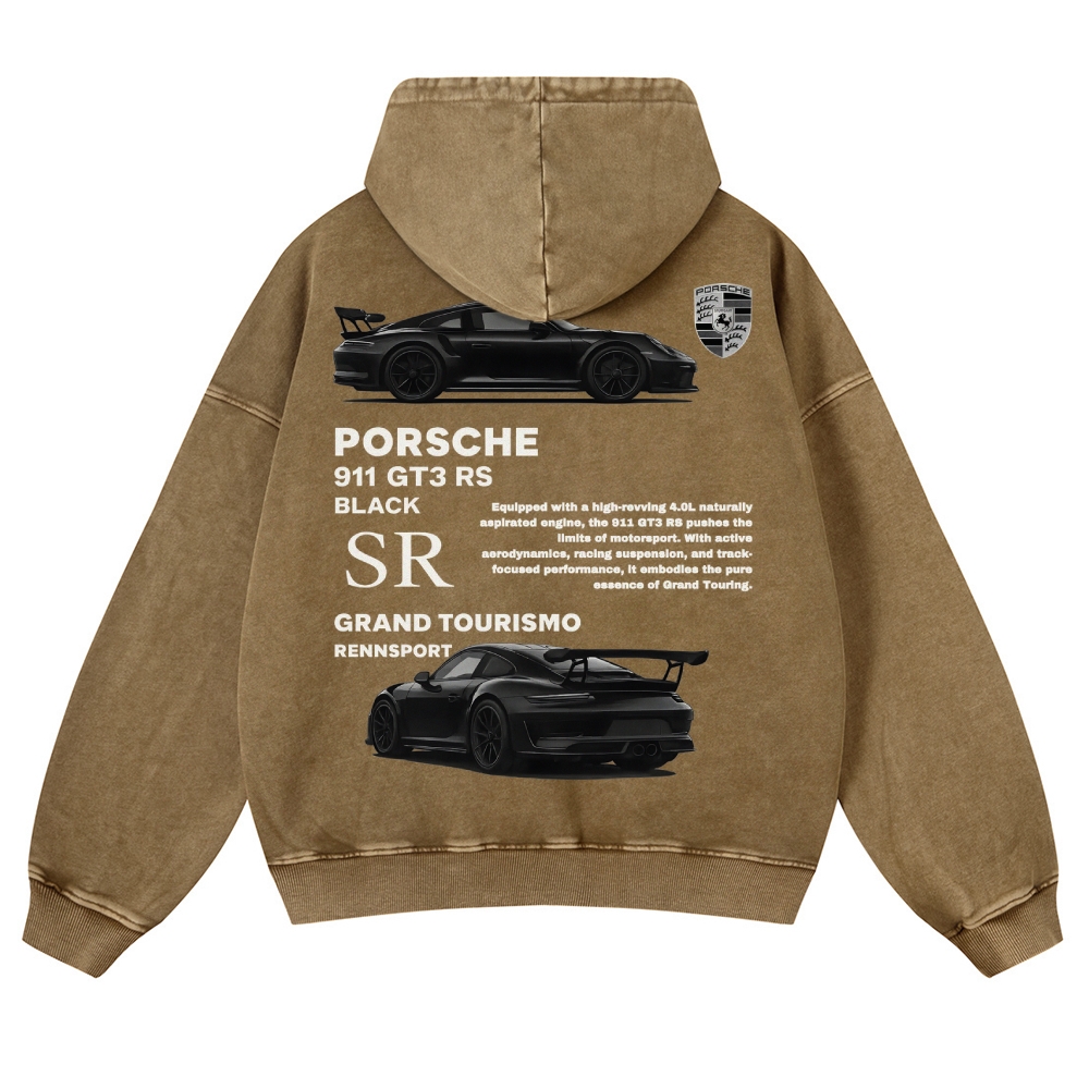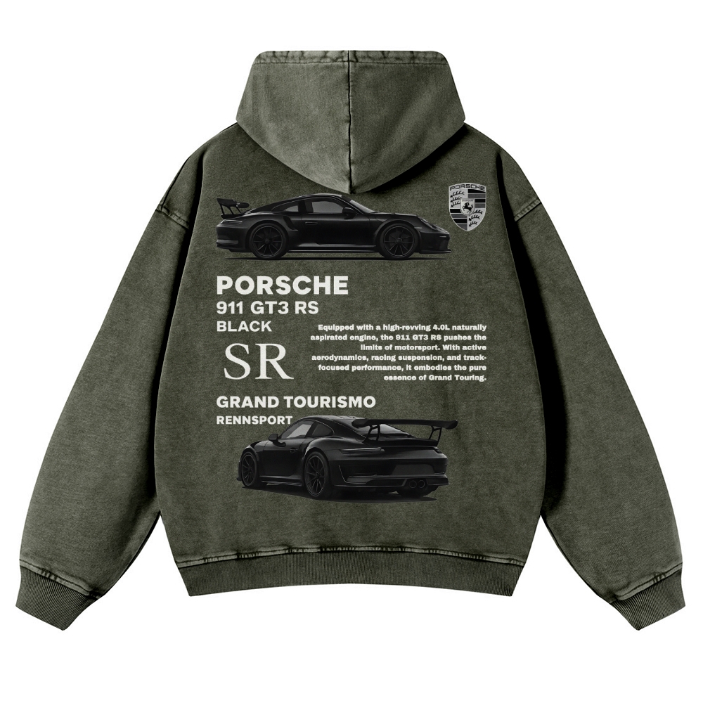 Black 911 GT3 RS Unisex Fit Vintage Washed Hoodie