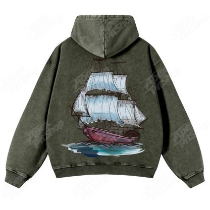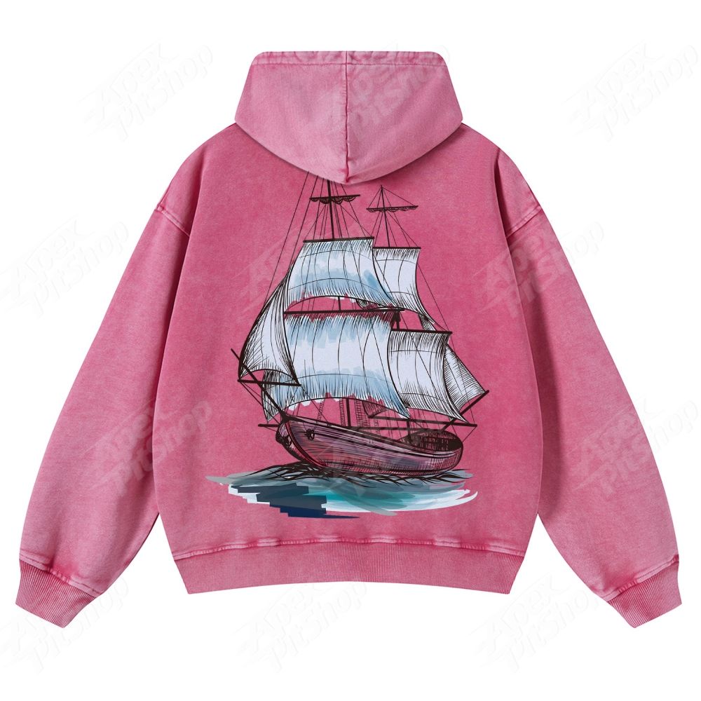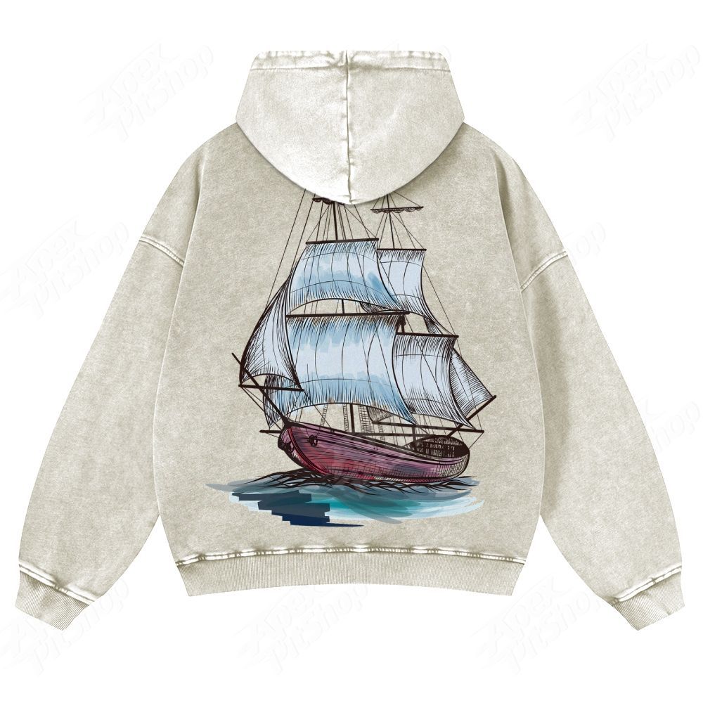 Boat American Retro Pattern Unisex Fit Vintage Washed Hoodie