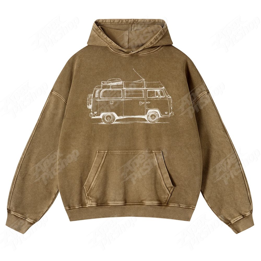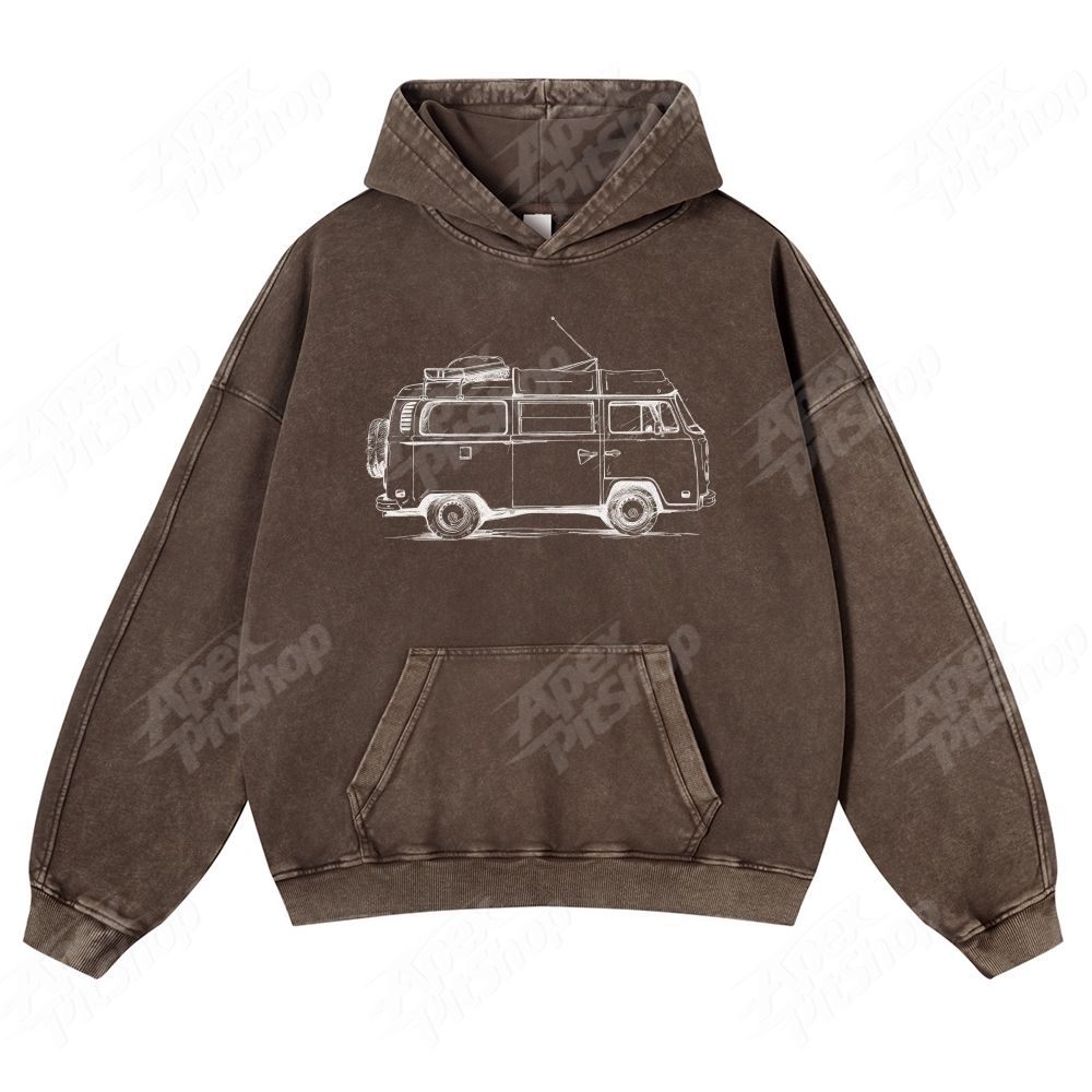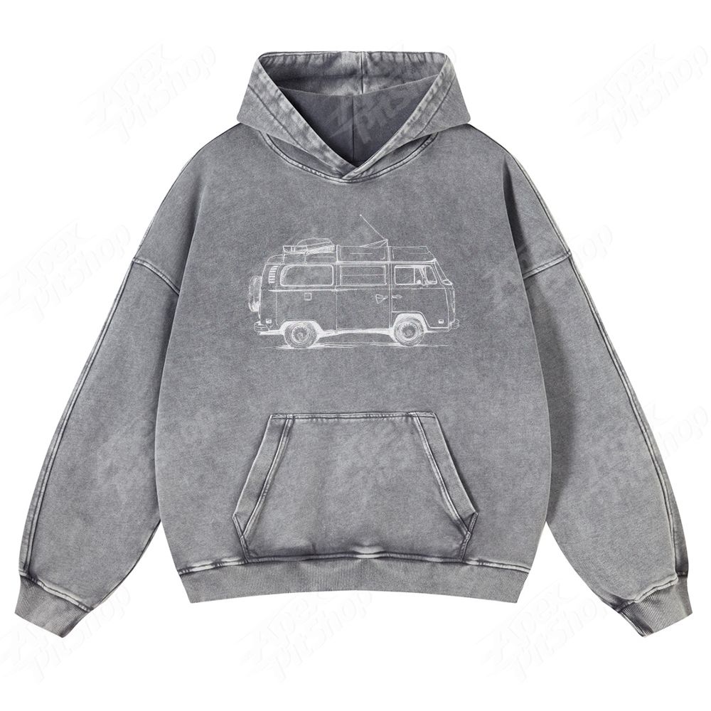 Bus American Retro Pattern Unisex Fit Vintage Washed Hoodie