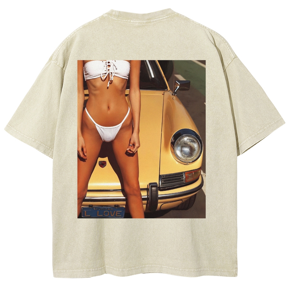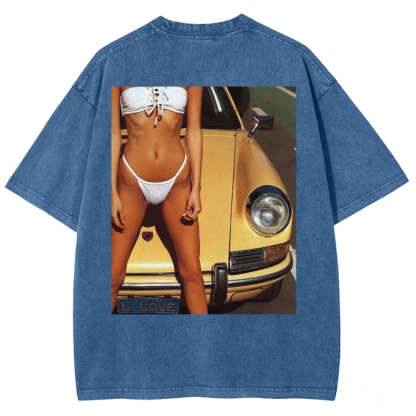 Golden 911 Racing Girl Unisex Fit Washed T-Shirt