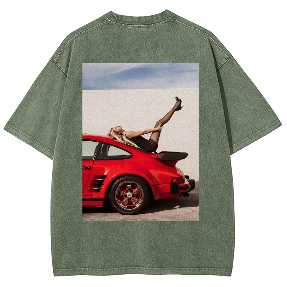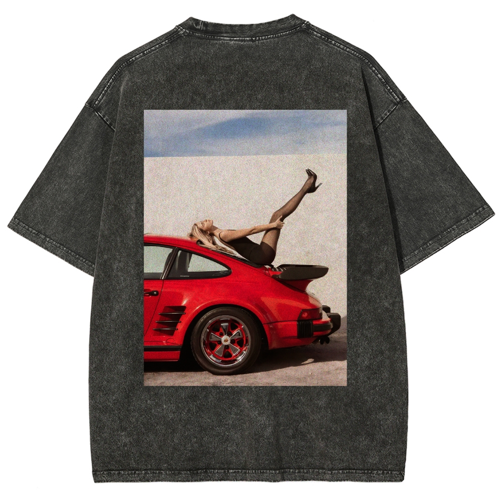 High Heels Red Supercar Unisex Fit Washed T-Shirt