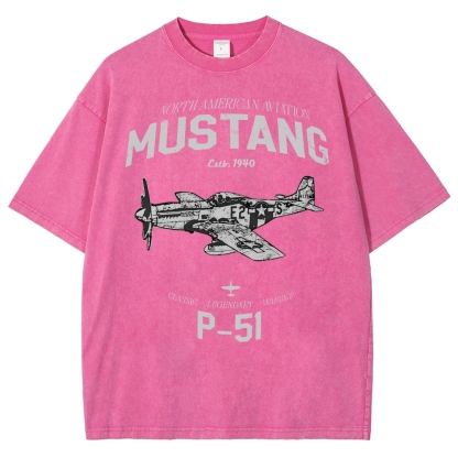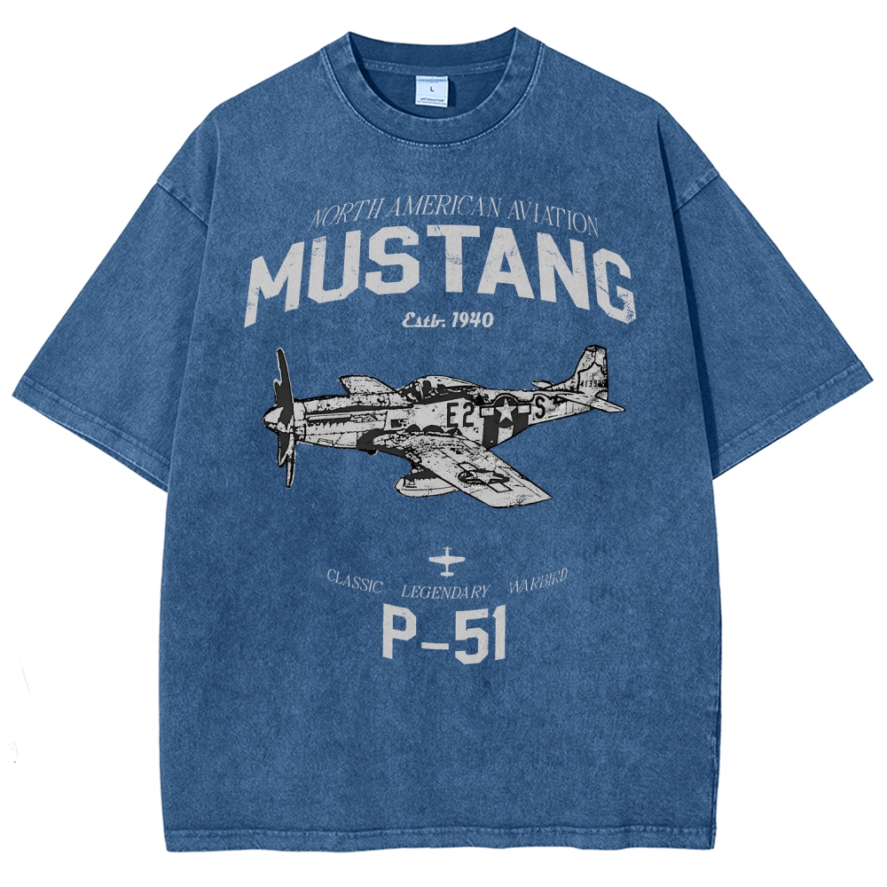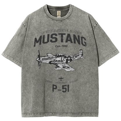 P-51 WWII Warbird Graphic Unisex Fit Washed T-Shirt