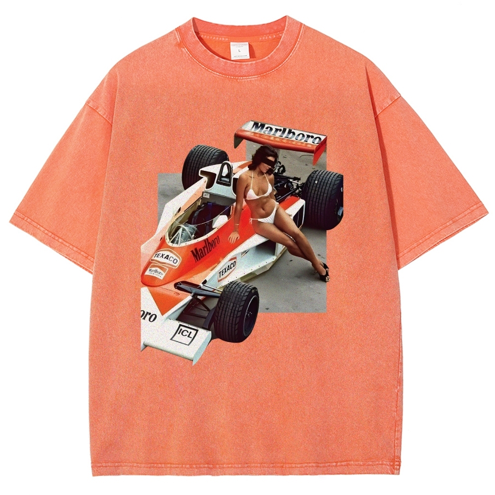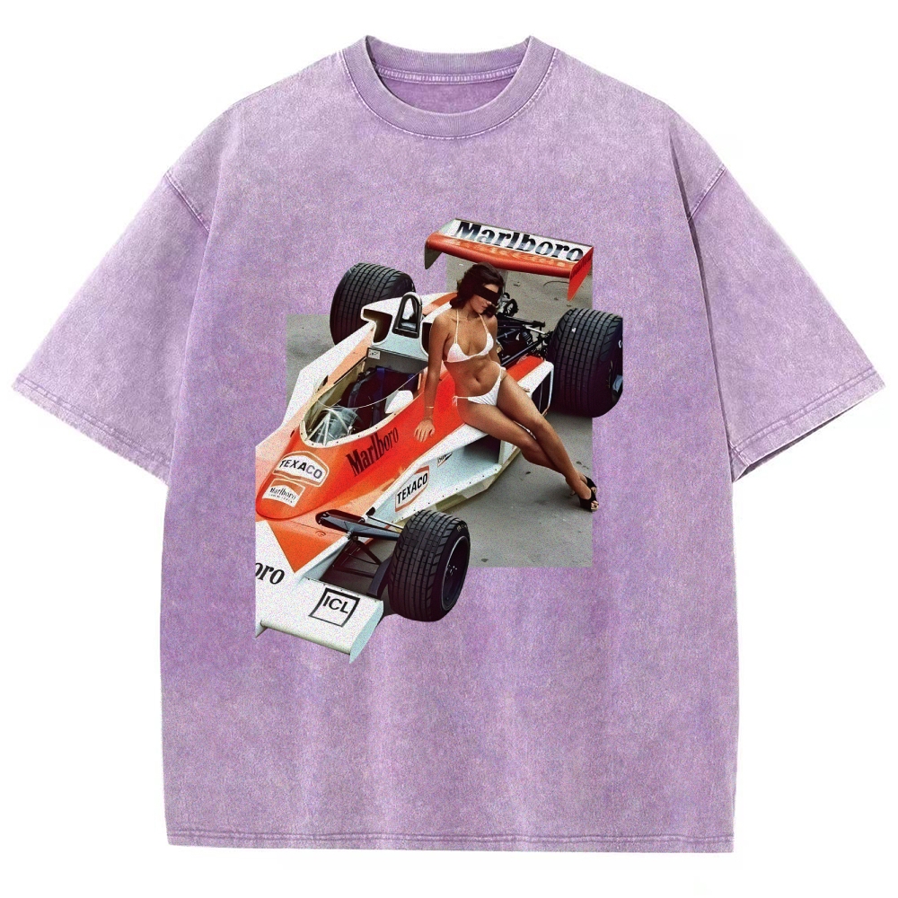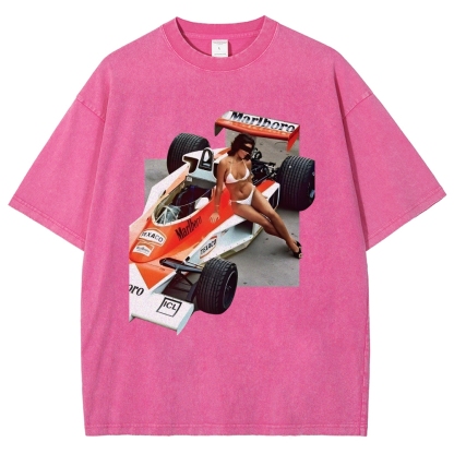 Racing Car Girls Vintage Poster Unisex Fit Washed T-Shirt