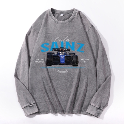 Racing Car Retro Deep Washed Vintage Long Sleeves T-Shirt