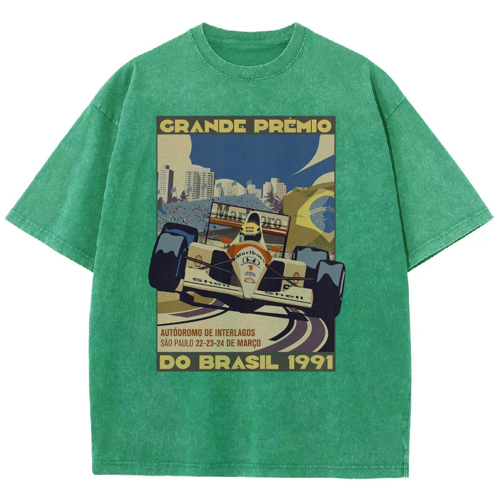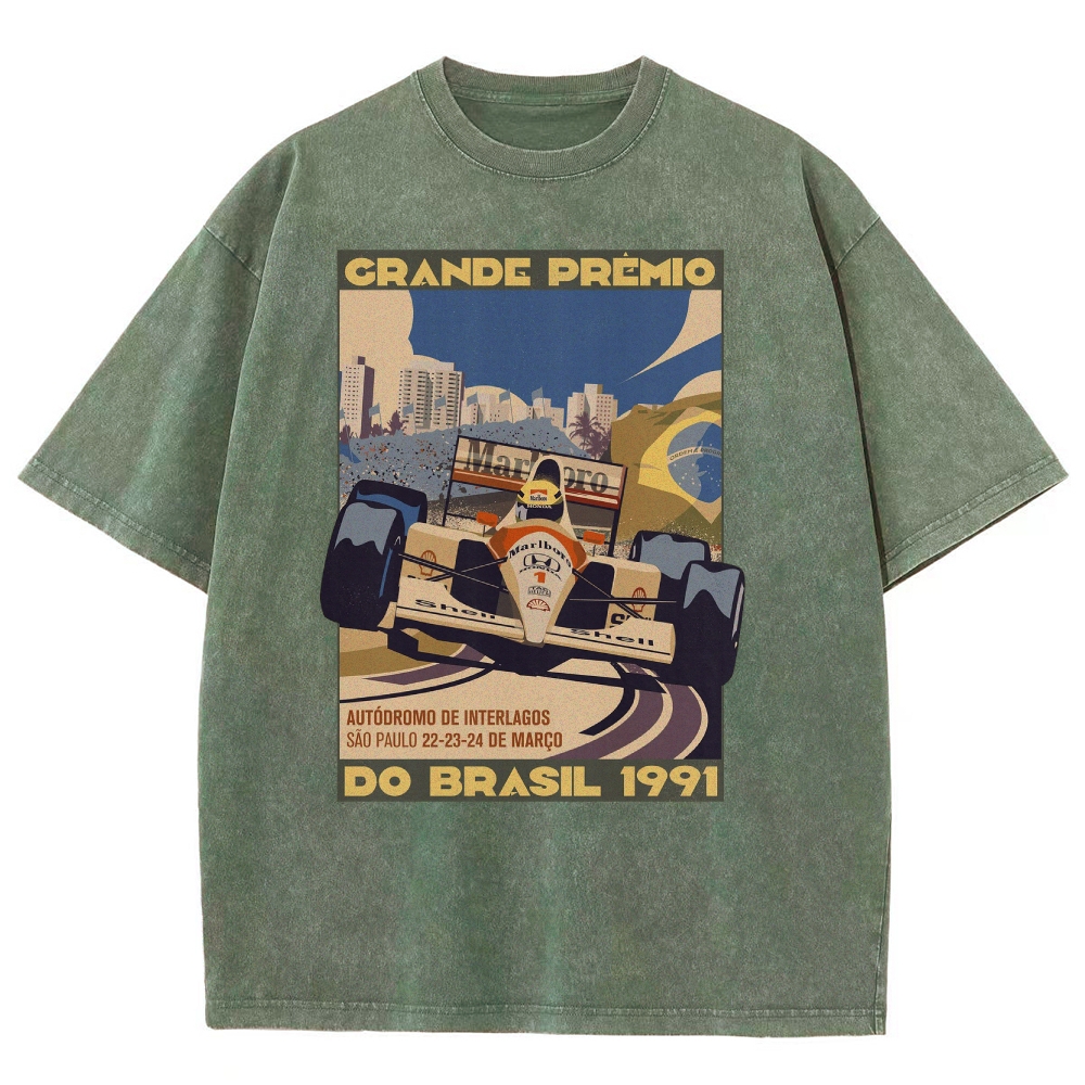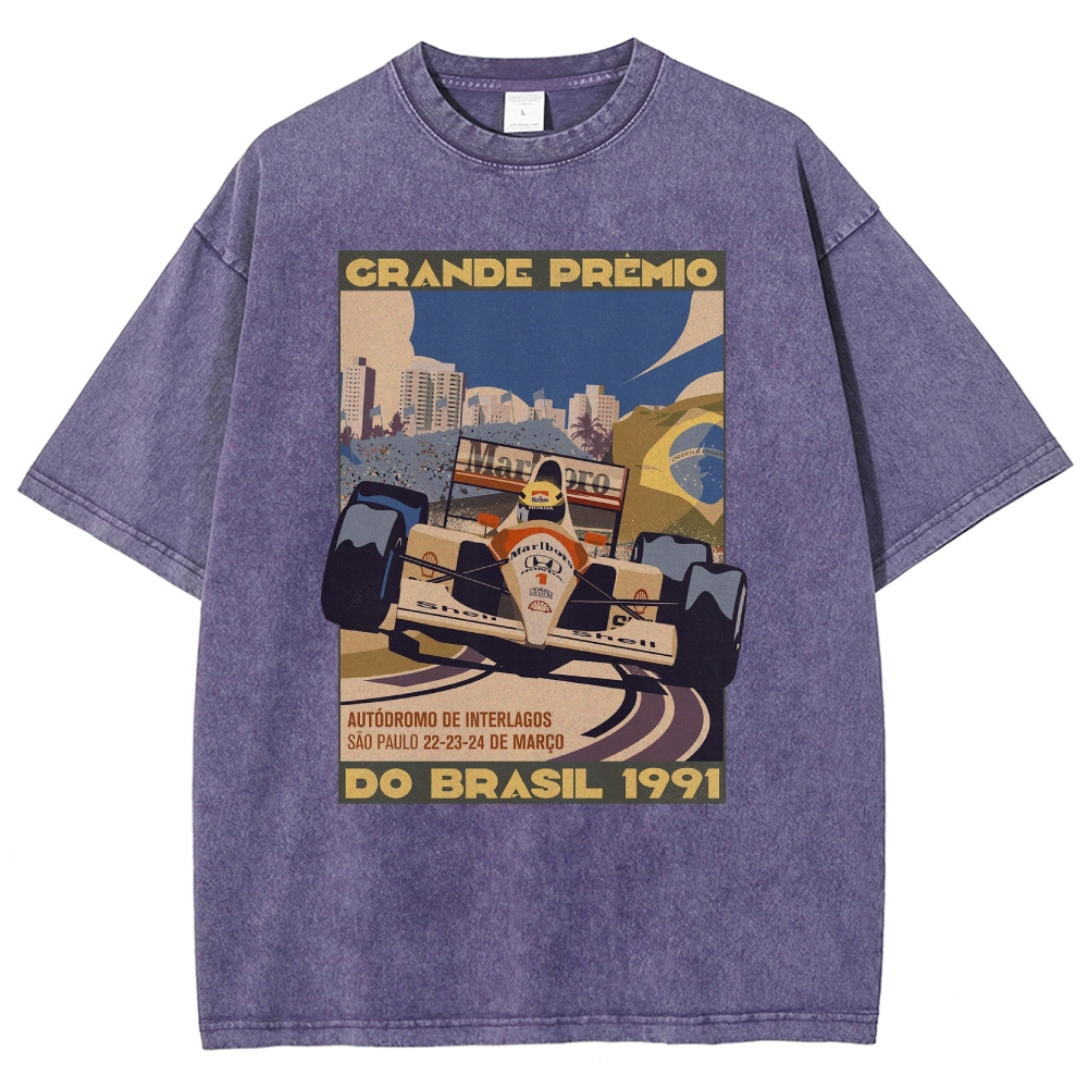 Racing Cars Vintage Poster Unisex Fit Washed T-Shirt