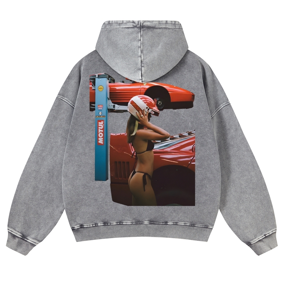 Helmet Girl Washed Graphic Tee Unisex Washed Hoodie