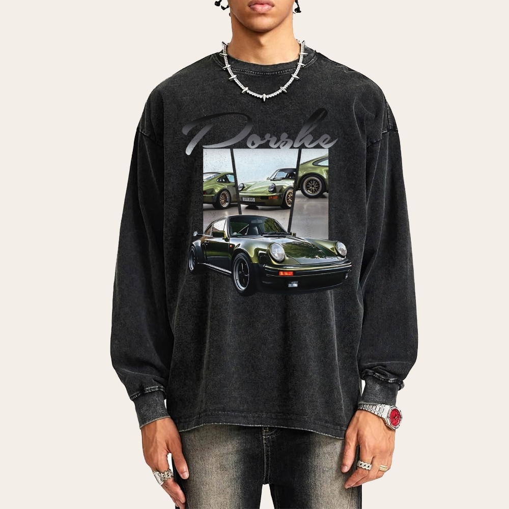Retro Green 911 Deep Washed Vintage Long Sleeves T-Shirt