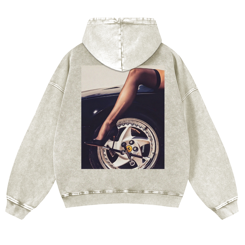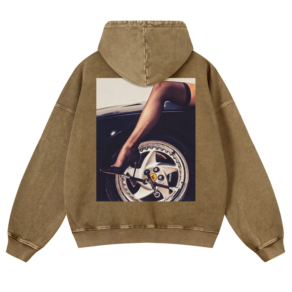 Sexy High Heel Supercar Unisex Fit Vintage Washed Hoodie