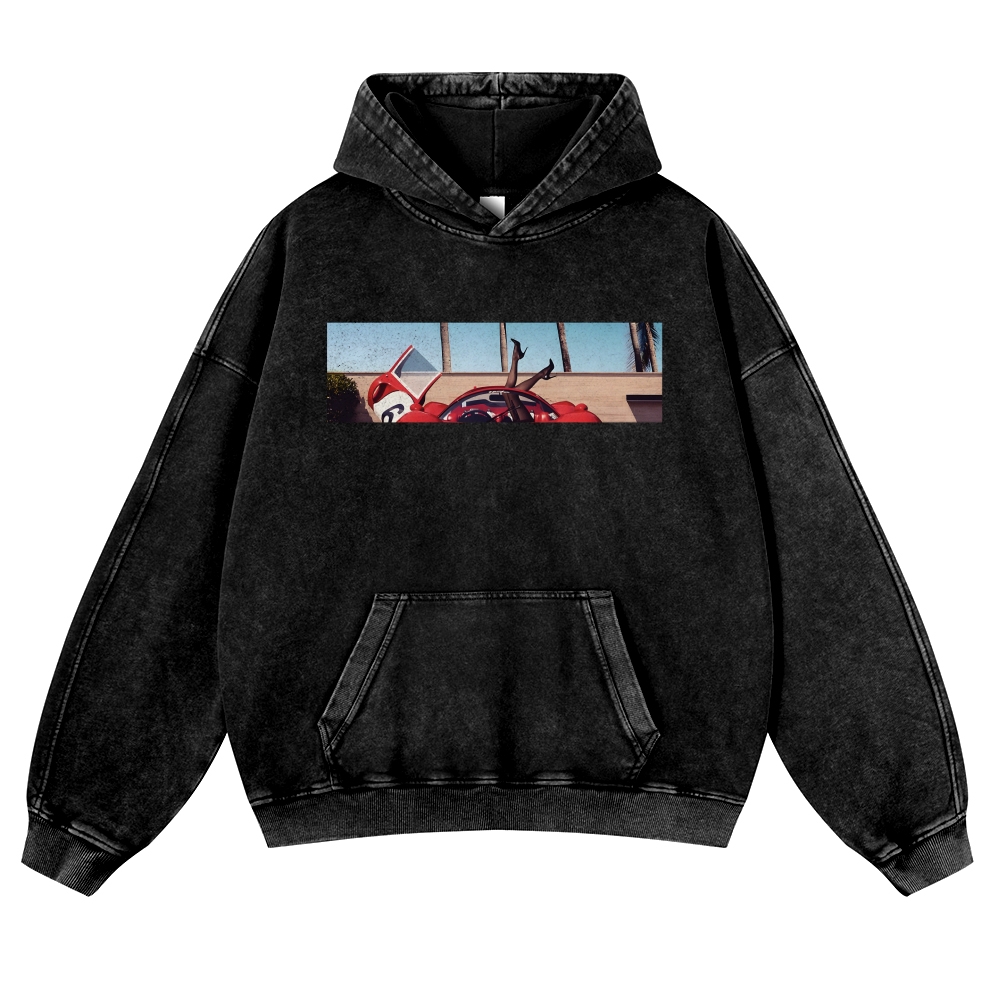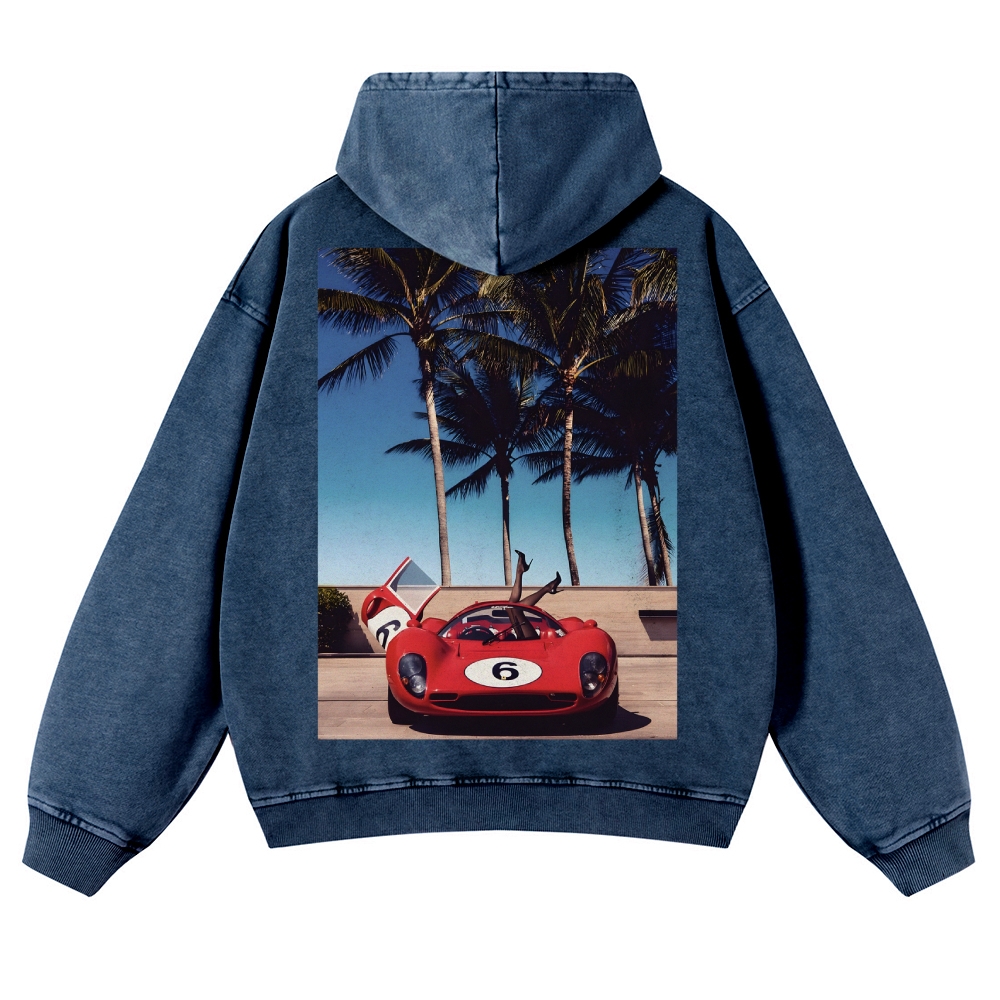 Six Coconut Trees Car Unisex Fit Vintage Washed Hoodie