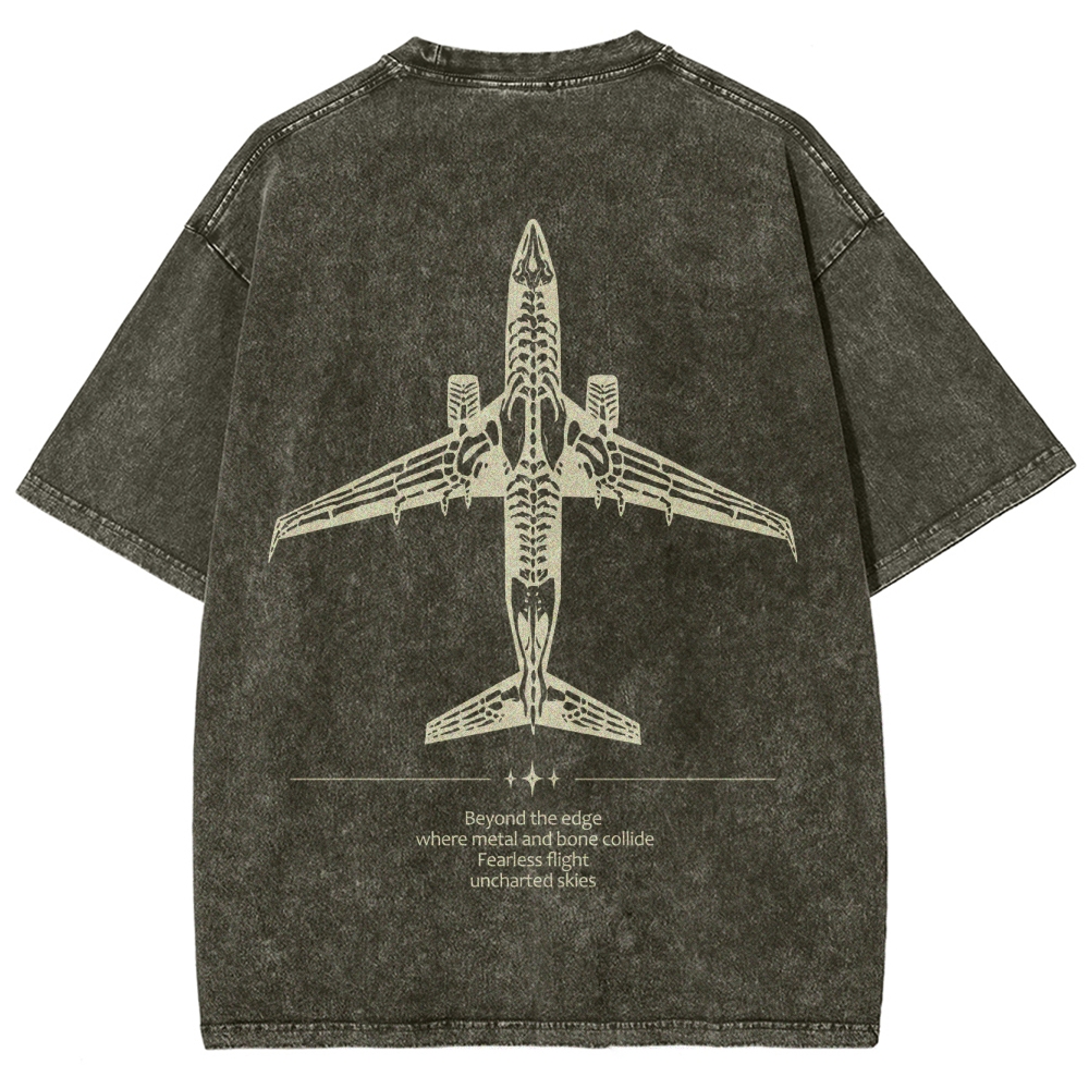 Skeleton Plane Unisex Fit Washed T-Shirt