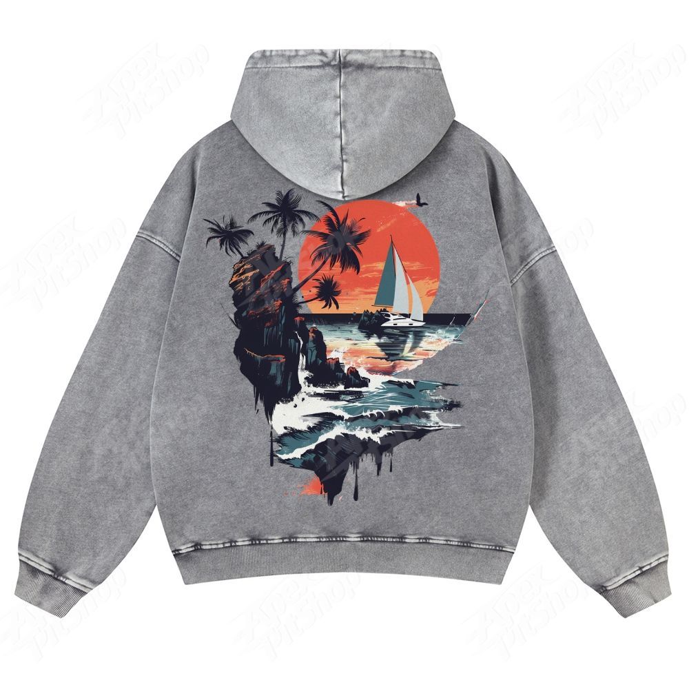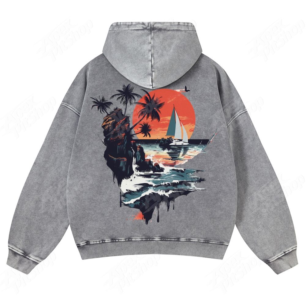 Sun & Boat Unisex Fit Vintage Washed Hoodie