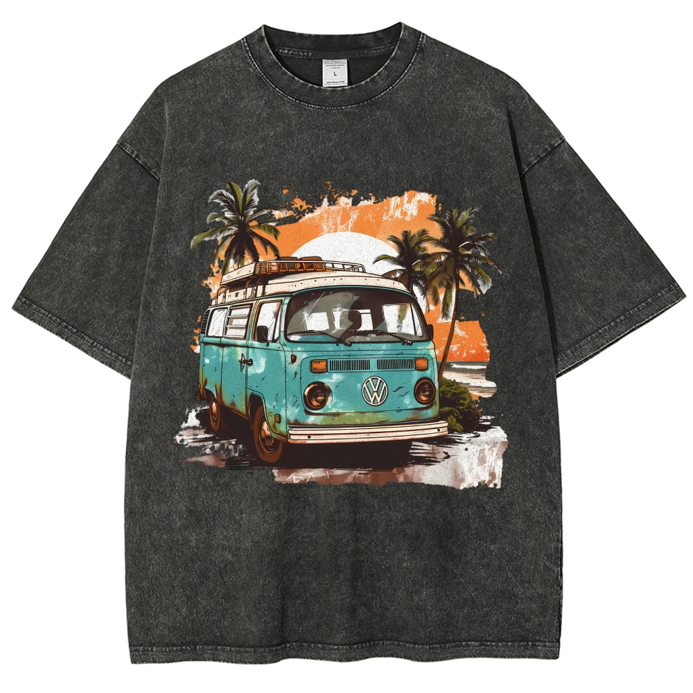 Sunset Retro Bus Unisex Fit Washed T-Shirt