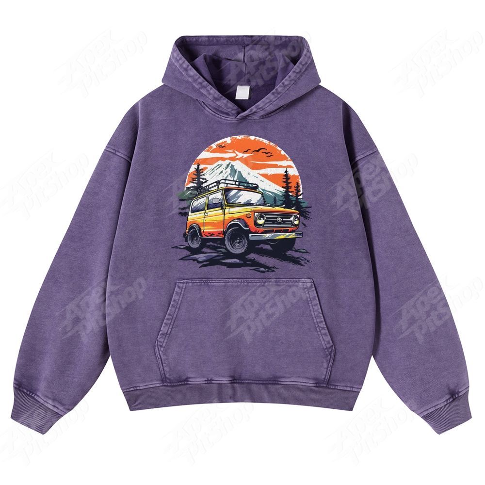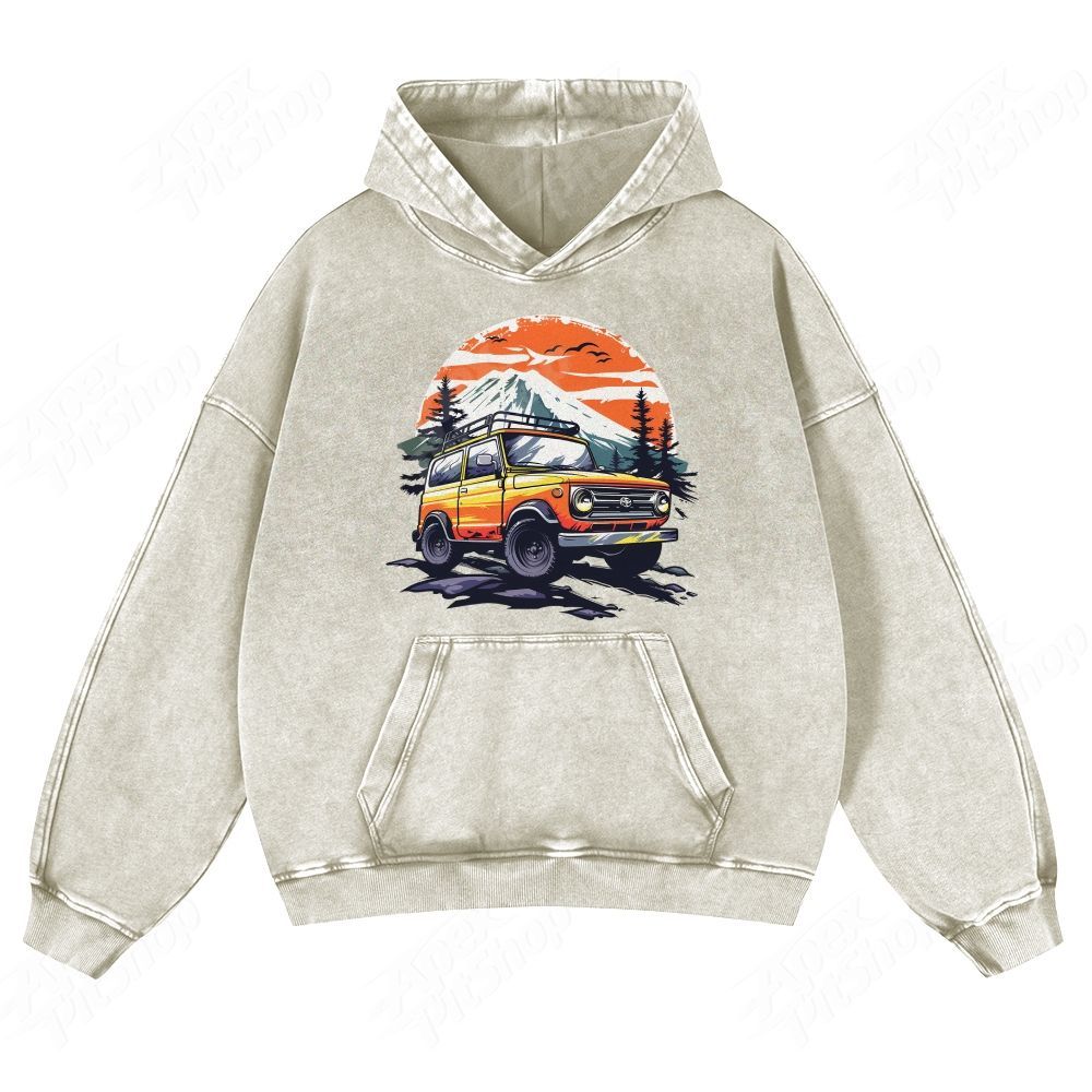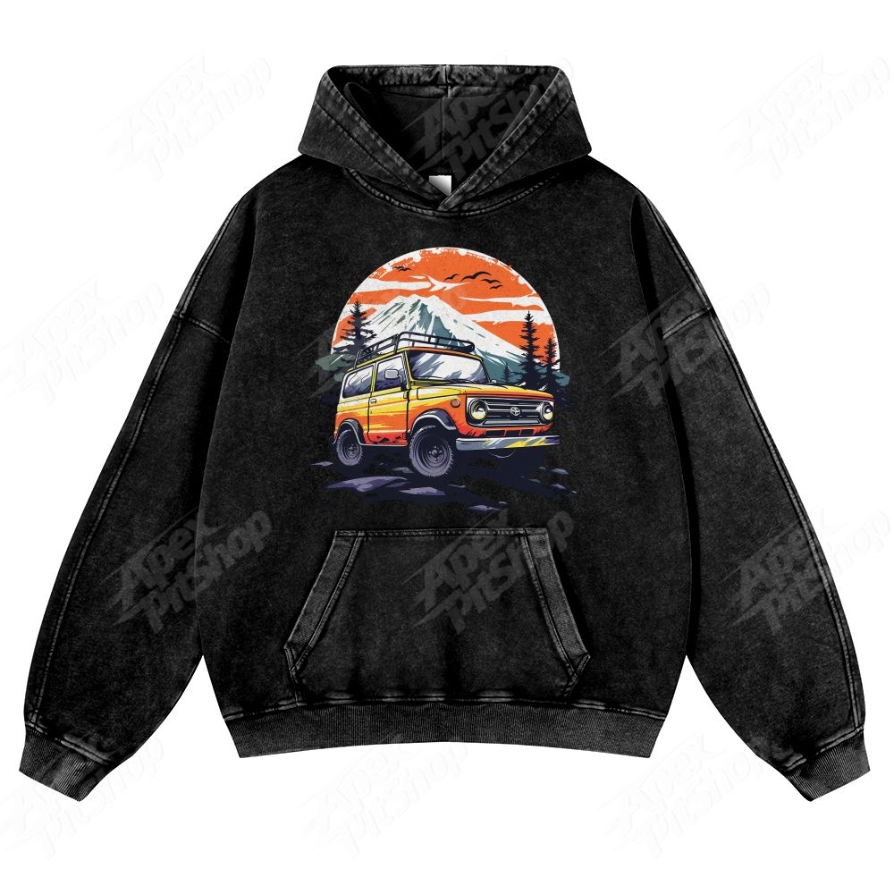 SUV Cars American Retro Pattern Unisex Fit Vintage Washed Hoodie
