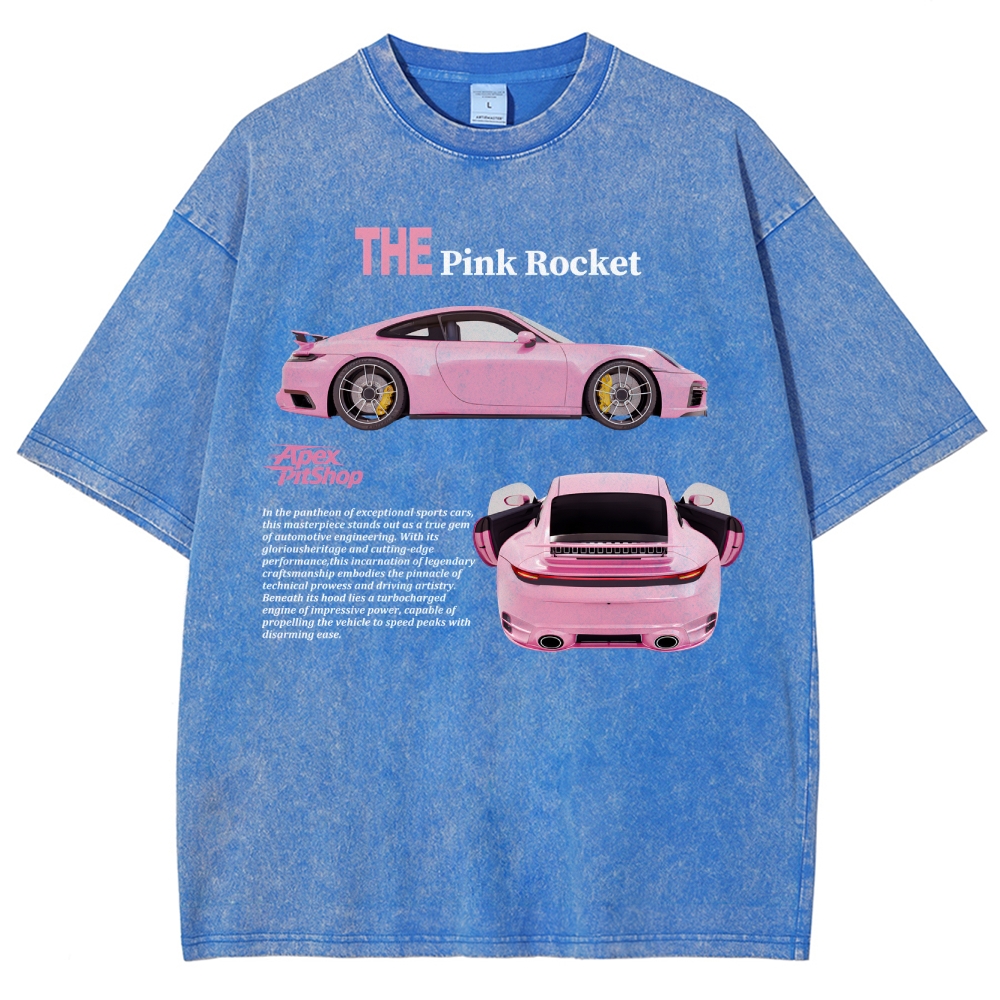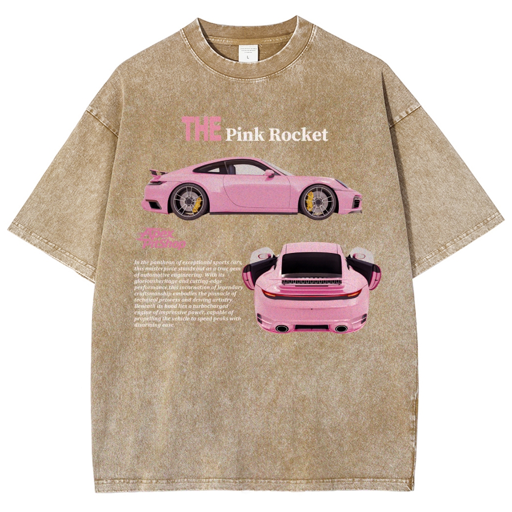 The Pink Rocket Cars Unisex Fit Washed T-Shirt